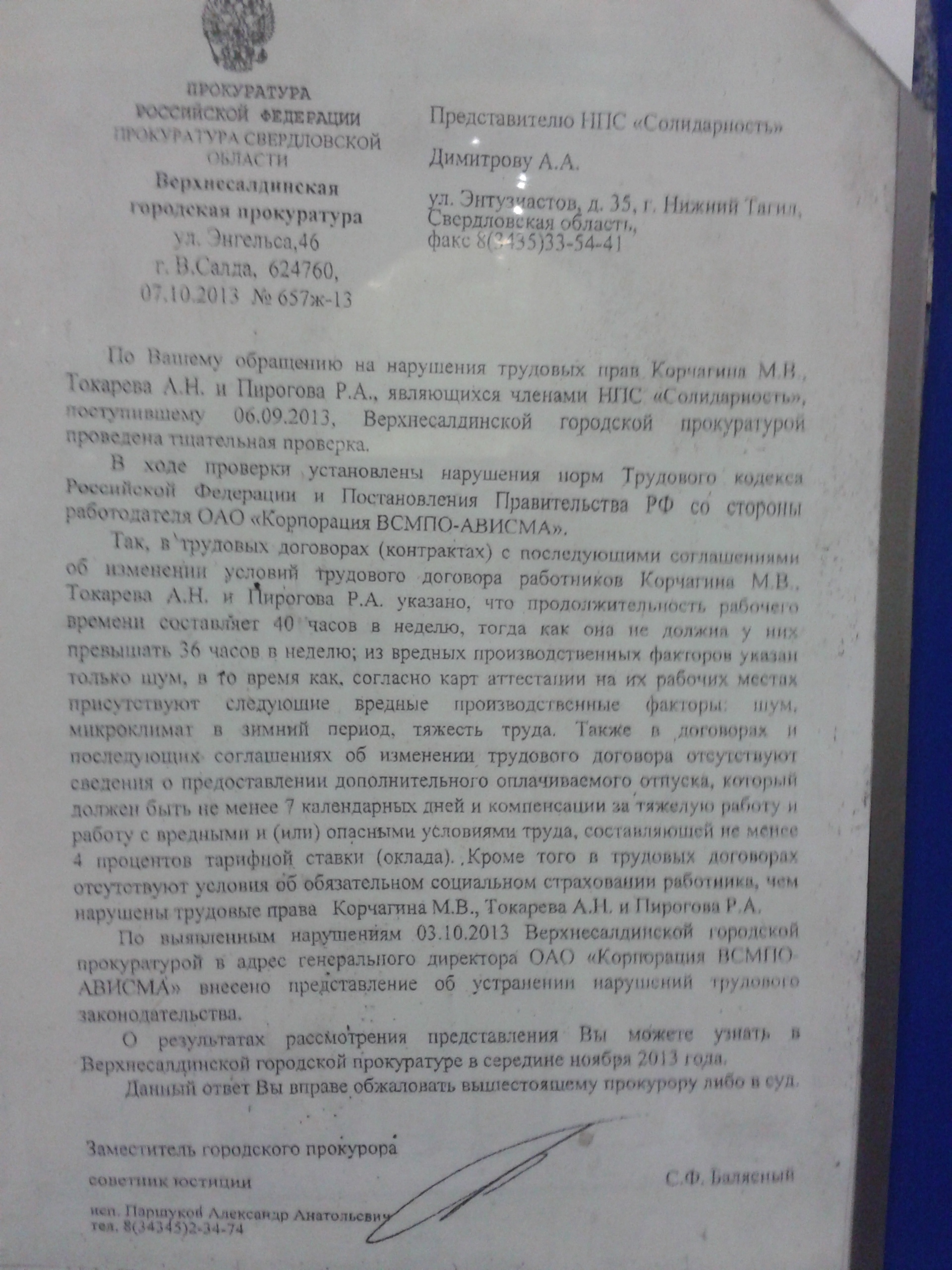 Сдается мне, что тут рекламмой попахивает!? На заводе есть уже культурно-досуговая платная контора "Профсоюз"! Так то для решения трудовых споров щас даже заводская коммиссия по трудовым спорам не нужна (там кстати представители-руководители заводские и члены культурно-досуговой конторы). По всем вопросам нужно обращатся в территориальный орган Федеральной службы по труду и занятости - Государственной инспекции труда в Свердловской области http://git66.rostrud.ru/git/polojenie/ А они уж разберут проблему по понятиям Конституции РФ и ТК РФ, они же и штрафы выпишут работодателю! |
