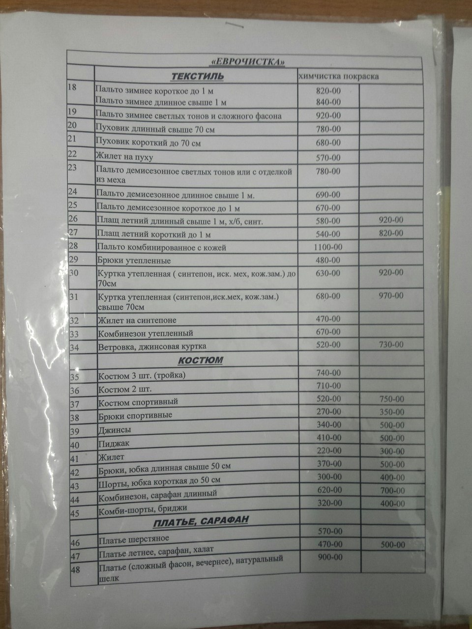 а на кожаные изделия? к сожалению, это все прайсы, которые у меня есть Кстати, кто будет чистить пальто - отпарывайте пуговицы сами и оставляйте их дома. У меня с пальто аж 2 штуки потеряли пару лет назад, но деньги всё равно взяли. Правда, извинились, но мне от этого не легче. Пришлось покупать новые пуговицы и полностью перешивать, уже самой. Сообщение отредактировал Airin - 29.10.2015, 19:52 |