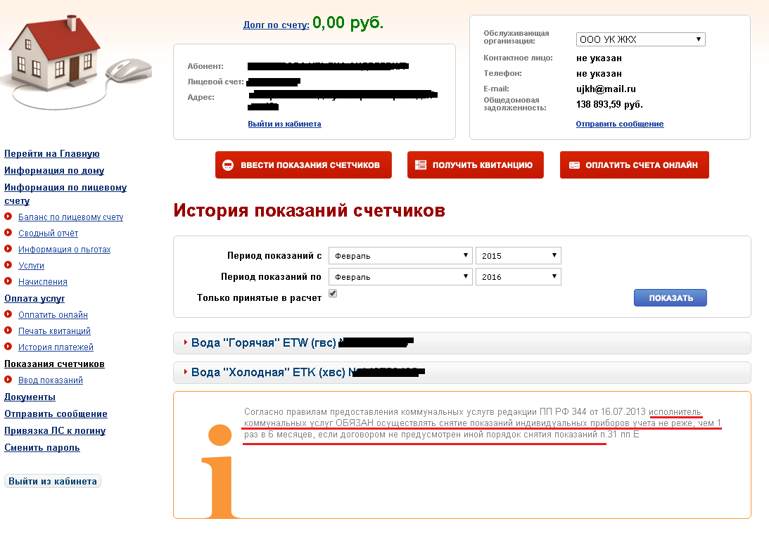 Воронова15. Даже в выхи ходят списывают показания. Вчера с трудом обьяснила бабуле про электронный кабинет. Сегодня к ней заезжала, говорит, приходили списывались показания и сказали, что как делали это, так и будут делать. На кол распространителя ложной инфы! Родителей и бабушек можно не напрягать личным кабинетом! Достаточно одному быть зарегестрированным! В настройках кабинета есть возможность привязать другие л/с родственников! Достаточно ввести № л/с, № дома и № кв! И на главной кабинета появляется возможность переключатся между л/с! |