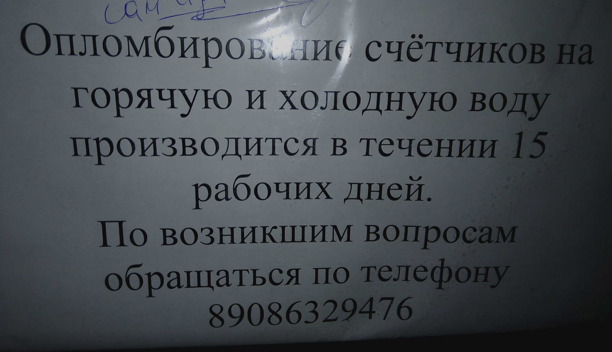 заявление пишется в офисе на Энгельса 61 (бывший Титан) Фото счетчиков старых. новых с пояснением какой на холодную/ горячую воду . Фото паспортов с номером новых счетчиков в вотсавп (смс) 89068035665. Только без крика, мата, и претензий. Заявление подали ещё 6 апреля,сказали придут на опломбировку через 2 недели,дальше карантин,в начале мая мне подсказали этот номер в ватсап,отправили 17 мая фото,адрес,показания и опять тишина,хотя всё было без крика,мата и претензий. |