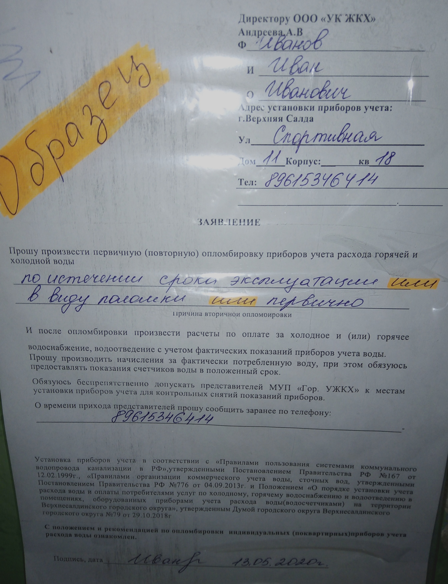 заявление пишется в офисе на Энгельса 61 (бывший Титан) Фото счетчиков старых. новых с пояснением какой на холодную/ горячую воду . Фото паспортов с номером новых счетчиков в вотсавп (смс) 89068035665. Только без крика, мата, и претензий. |
