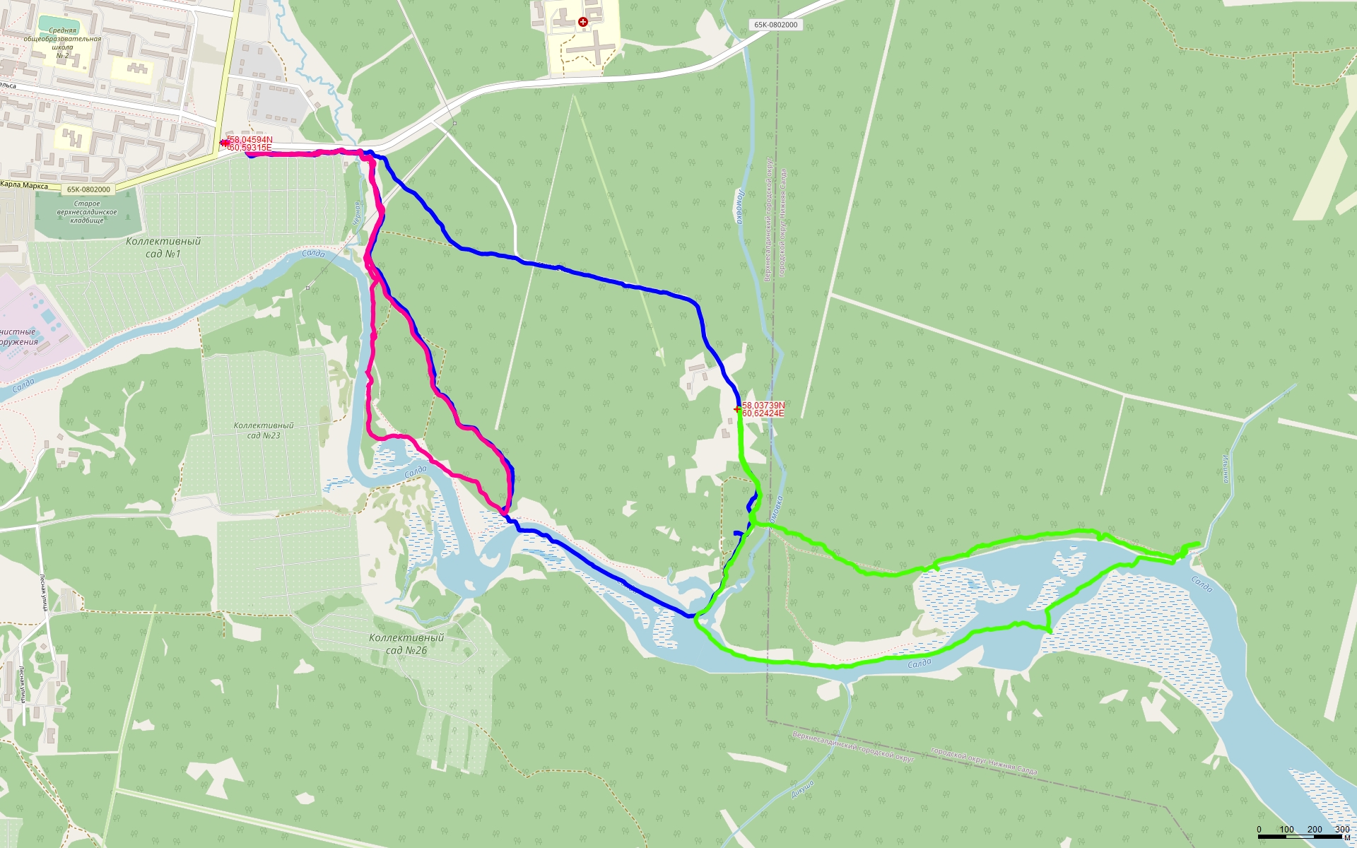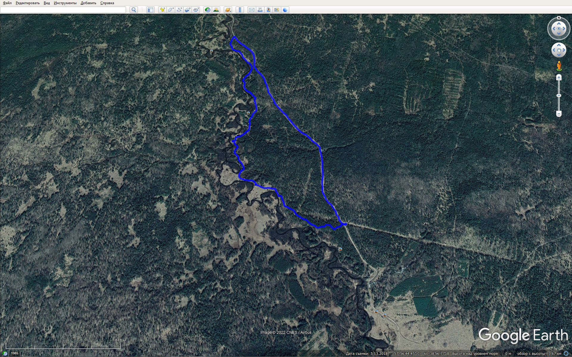 Маршрут в окрестностях Нелобы протяженностью около 6 км. Красным кружком помечено место старта. Там можно оставить машину и идти в лес по дороге по направлению к затопленным кварцевым карьерам. Далее дорога идёт между самым большим карьером и рекой, затем вдоль берега реки до брода. Красной линией помечен мало пригодный для прогулок участок маршрута дальше брода, прибережные заросли и прочее непотребство. Там где кончается красная линия мы поднялись на высокий берег, по которому идёт неплохая тропа, откуда она тянется я не знаю. Далее маршрут проходит по хорошей тропе с живописными видами вдоль берега, до устья 3-й речки, дойдя до которого, нужно повернуть направо и идти по лесной дороге до дороги на Нелобу. Не исключаю, что есть более короткий путь. Трек здесь: https://disk.yandex.ru/d/QZRjll5XT3AHTA Сообщение отредактировал Romantic - 30.10.2022, 0:57 -------------------- Зачарованно глядит