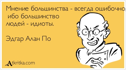 наверное, нам, к сожалению, придётся признать, что мы тут ничего сделать не можем... только смириться(((( разговоры разговаривать - уже больше месяца разговариваем, а в действии - только наблюдать очень жаль, что ОНО сейчас почти победу над нами всеми празднует -------------------- Принесите мне дверь - я выйду!
