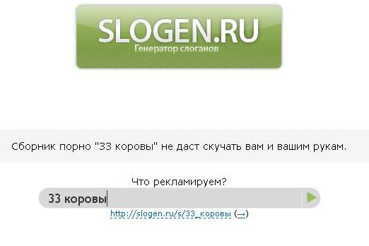 http://slogen.ru/ Вводишь слово и генератор выдает тебе рекламный слоган. Ржачи и удачные моменты просьба выкладывать в картинках. Чтоб правдоподобней! |
