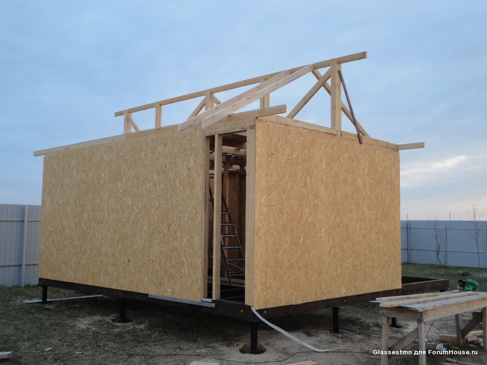 а не вредно, когда эти панели паром прогреваются? -ну выделения там всякие ядовитые, не? Это не панели, это каркас. ОСБ снаружи обшивается чем захочешь, а в качестве утеплителя используется каменная вата, а затем фольгированный изоспан. На полу - утеплитель пенополистерол |