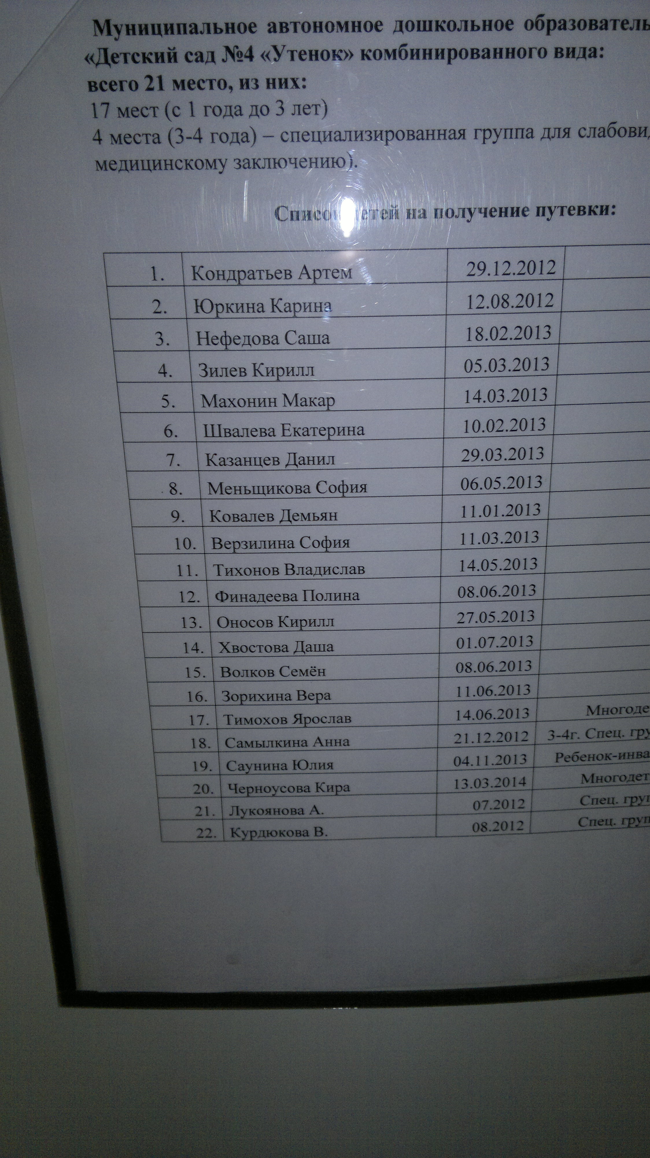 Я лично приходила и спрашивала свой номер, на что мне женщина ответила - если даже и будет у вас Эл номер, то список вы увидете общий а неменно по садикам. и там еще в этом списке все еще есть дети которые уже устроены в садик(семьи льготники) так что Эл номер смысла нет брать. А узнавать какие вы по очереди в определенный садик Раньше в 2013 году действительно было не видно номер очереди, а с 2014 года всё видно, причём с учётом льготников. Смотрю номер очереди через сайт http://edu.egov66.ru:444/ Сообщение отредактировал Ящерица - 25.4.2015, 23:54 |