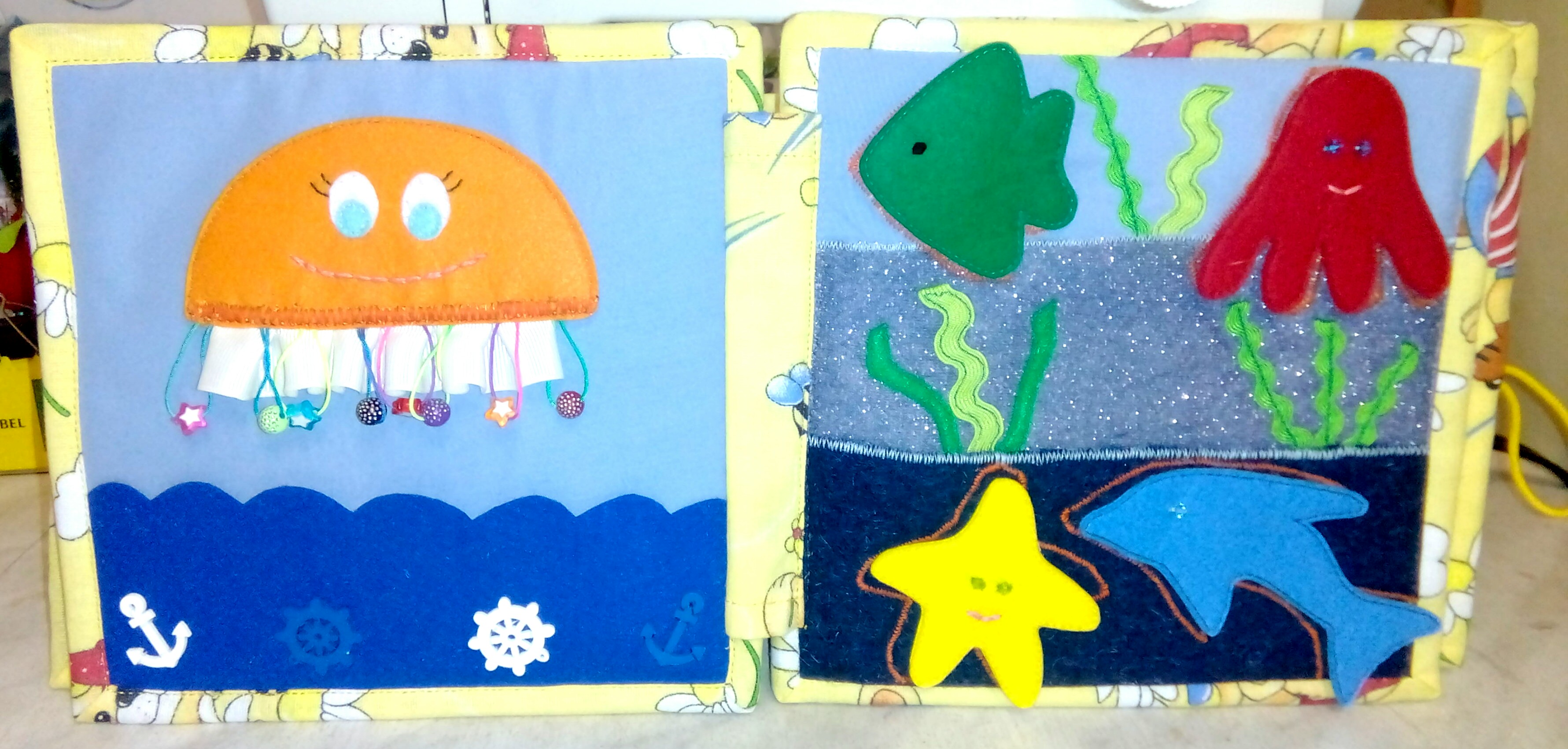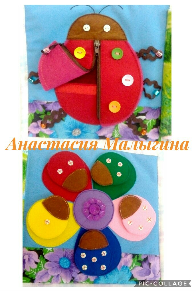 Некоторые работы можно воочию посмотреть в магазине "Счастье в подарок" в ТЦ "Райт". Развивающие книги и кубики - это уникальный подарок для детей. В игровой форме можно научить ребенка пользоваться всеми видами застежкек, которые встречаются в одежде. Также изучаем цвета, геометрические фигуры, животные, счет. Ручная работа, все детали пришиты. Клей не используется. |