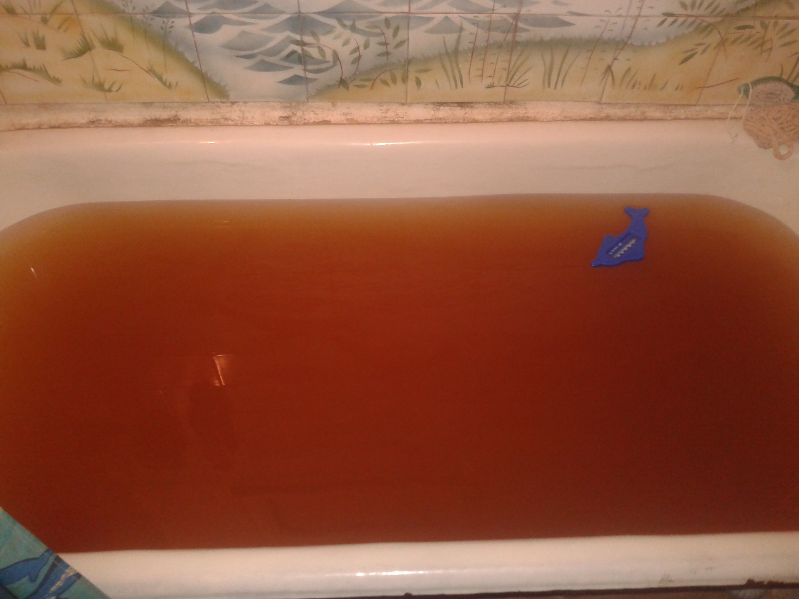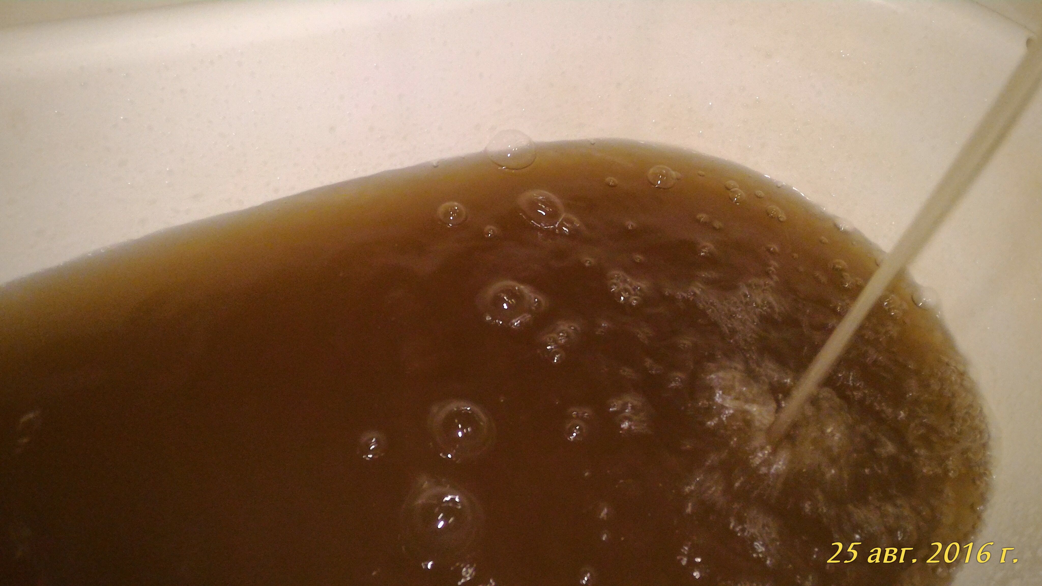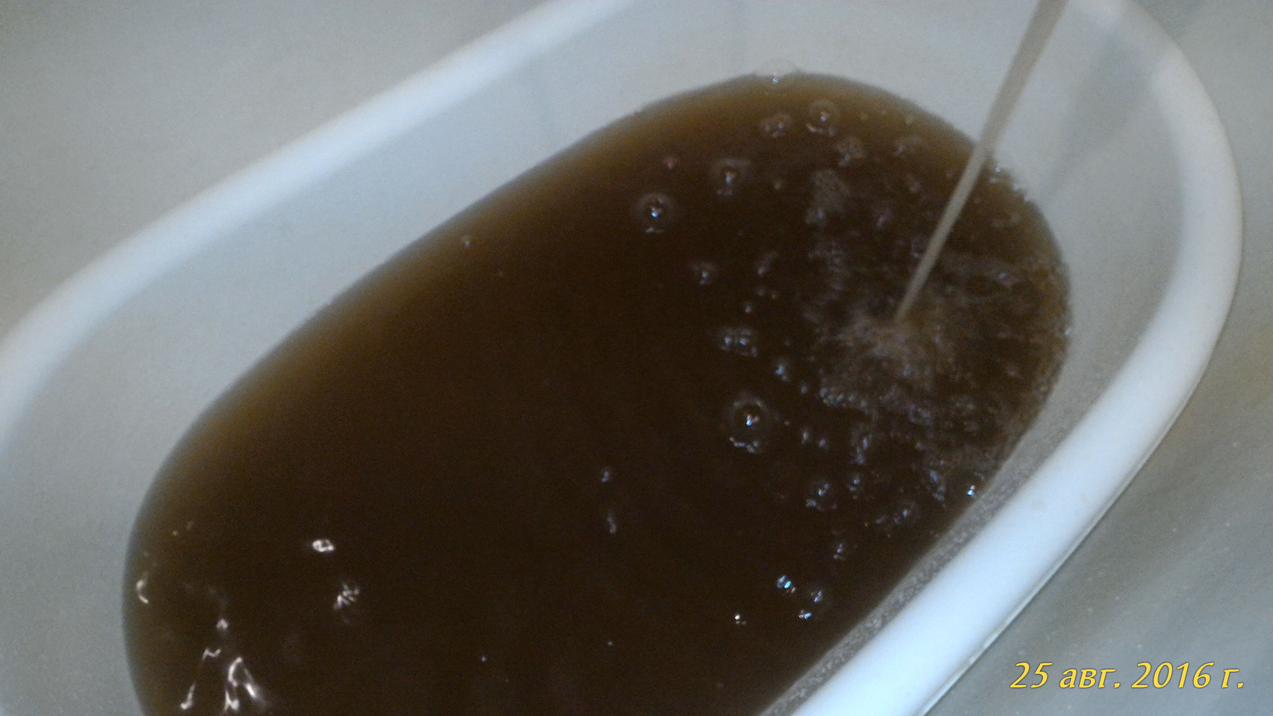 За администрацией вода такая же вонючая, ржавая. Видимо по всему городу беда. Наливаешь - через некоторое время мутнеет, желтеет. Думала глюки у меня - ан нет, оказалось все так и есть. Сверху пленка образуется маслянистая. Унитаз и ванная желтые.