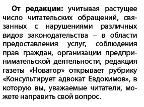 Почитал на днях газету Новатор , интервью с адвокатом Евдокимовым, понял так, что сейчас можно через редакцию газеты задать вопрос адвокату Евдокимову В.М. и типа он будет консультировать. -------------------- Пол Декор Декоративная штукатурка Декор для стен Студия декоративной штукатурки