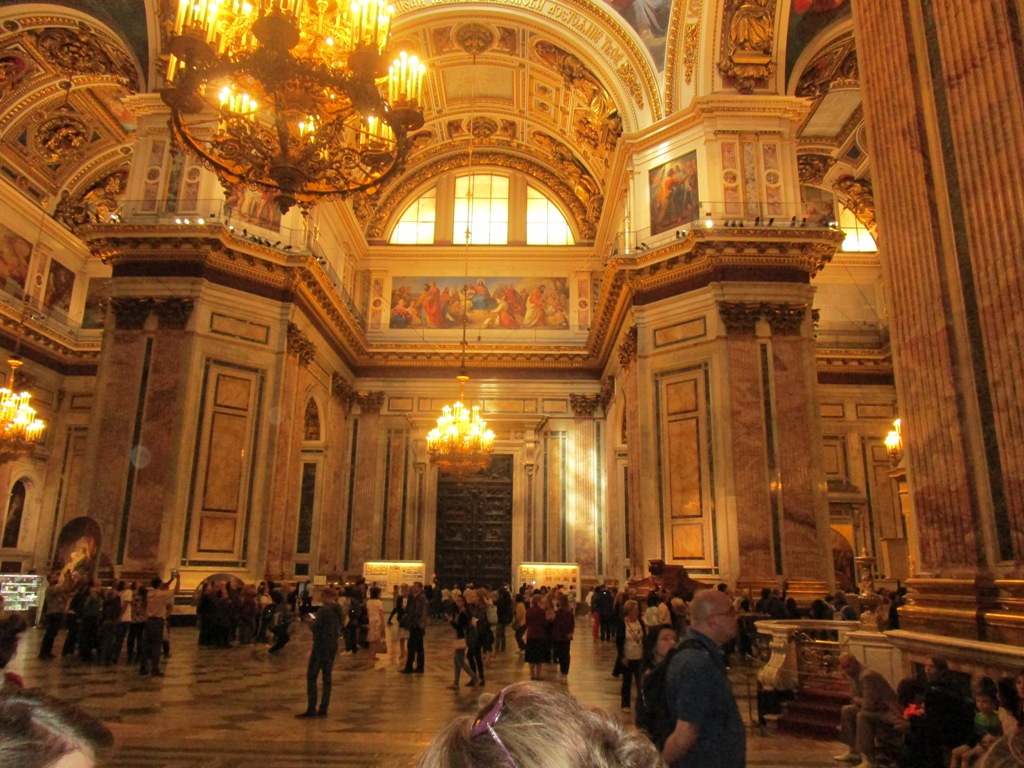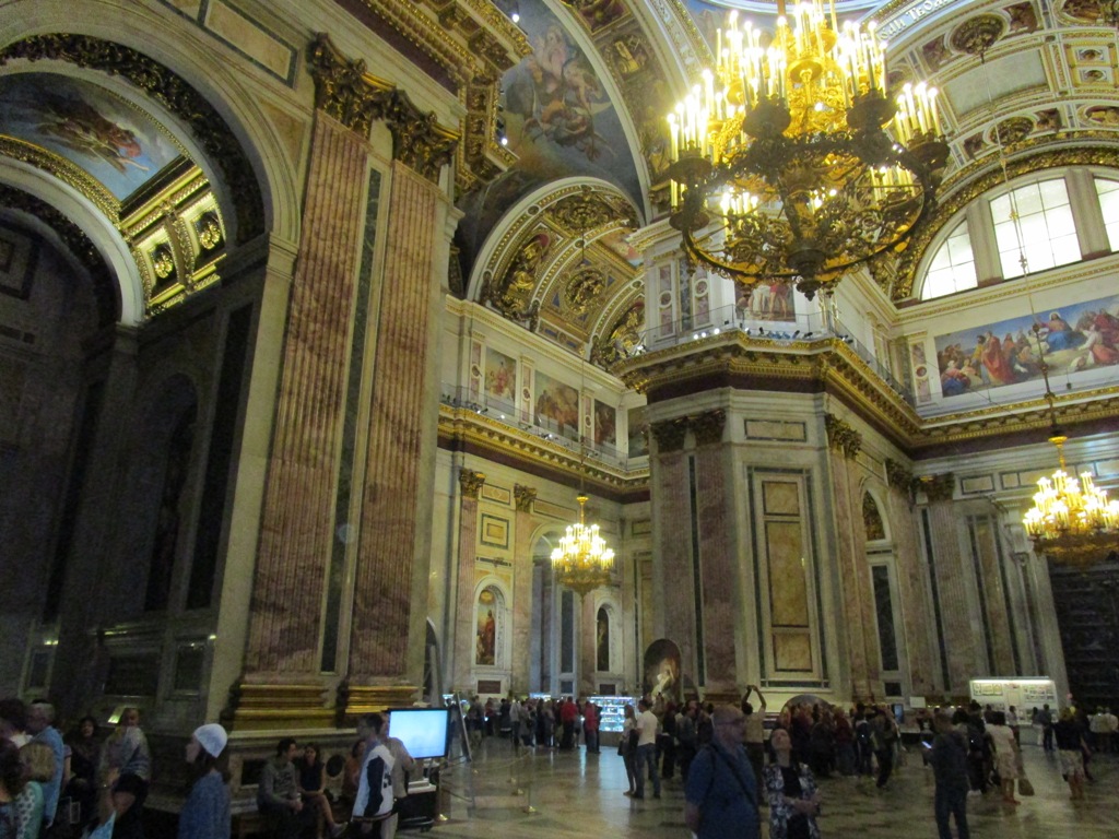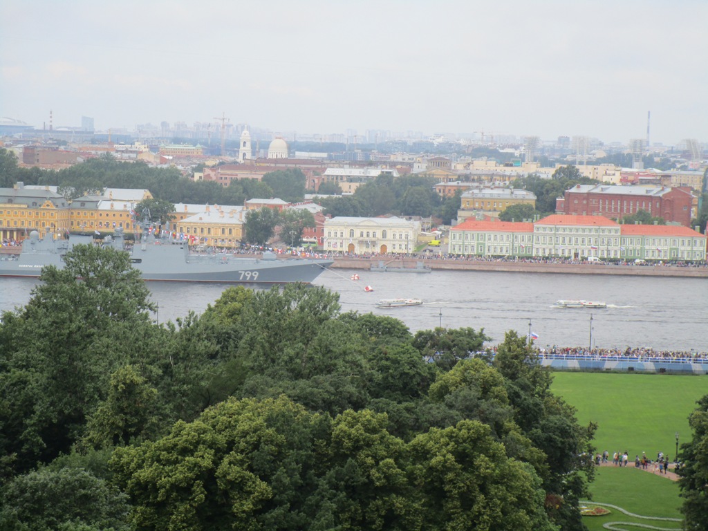 День четвёртый. Этот день был самым насыщенным не только по количеству посещённых достопримечательностей и парада, но и длине маршрута - прошли 15 км. Очень помог детский велосипед, на котором передвигалась дочь. Маршрут начался с посещения парада ко дню ВМФ. Впечатления не очень, так как движение кораблей мы не видели по причине того, что было очень много народа. Подсластило впечатление выступление самолётов с триколором в конце. После парада пошли в Исаакиевский собор. В кассах было очень многолюдно. Слева от них расположены терминалы, где народа практически нет, так как там не распространяются скидки на детей. В терминале я приобрёл единые билеты с посещением как смотровой площадки на колоннаде, так и самого собора. Забраться на колоннаду – это то ещё испытание. Необходимо подняться по 211 ступеням. Причём вначале лестничный марш примерно 1 метр шириной, а в конце сантиметров 40. Лестница винтовая. Поднявшись на смотровую площадку, открывается классный вид на центр Санкт-Петербурга. Обостряют ощущения ограждение из тонких труб. В соборе понравилось. Там формируют экскурсионные группы и бесплатно проводят по собору. После Исаакиевского собора мой путь с остальными членами семьи разделился. Я проводил их до Кунсткамеры, которую очень хотела посетить супруга, а я направился на стадион «Петровский» и дворец спорта «Юбилейный». В Кунсткамеру идти не хотел, потому что по отзывам знакомых, ничего особенного там нет. Супруга мне не поверила, но позже мне сказала, что действительно ожидала больше зрелищности. Следующий объект – Пышечная на Б.Конюшенной, 25. Пончики очень вкусные. Очередь выходила на улицу примерно на 30 метров. Нас это не испугало, тем более в помещении она раздваивается на 2 зала и через полчаса мы кушали горячие пончики, запивая вкусным чаем. Подкрепившись, пошли в Спас на Крови. Очень понравилось. Особенно рассказ экскурсовода с историческими выкладками о том, как здание собора в советские времена использовали как морг, а затем как овощехранилище. После Спаса - Копейка – и домой спать |