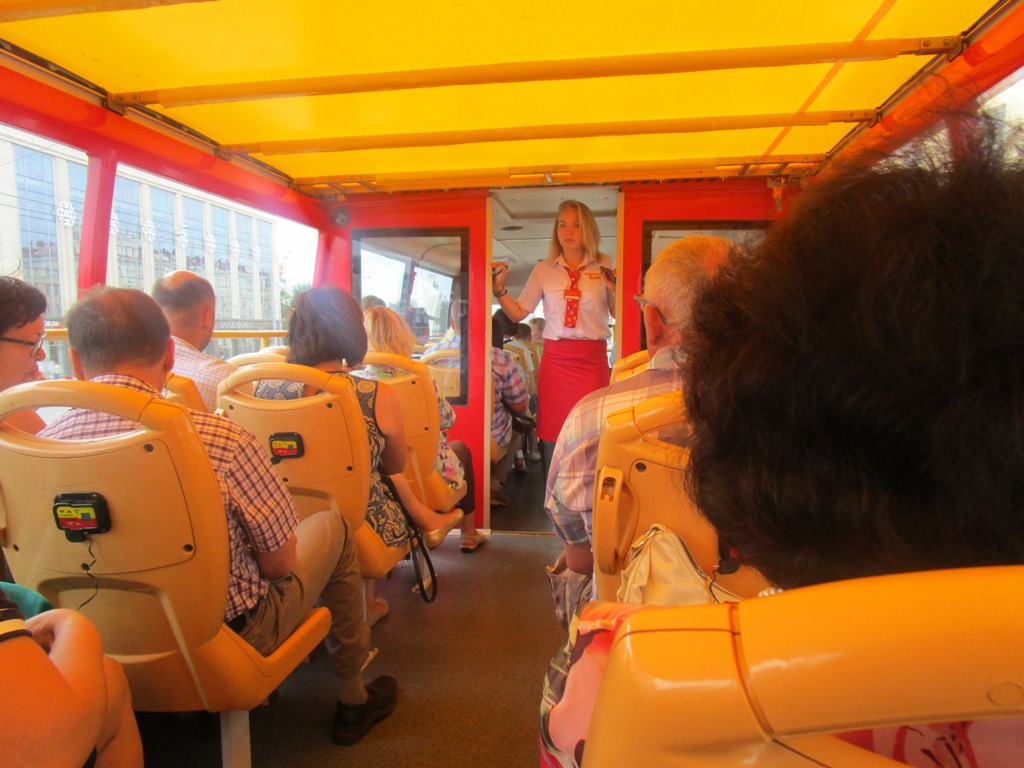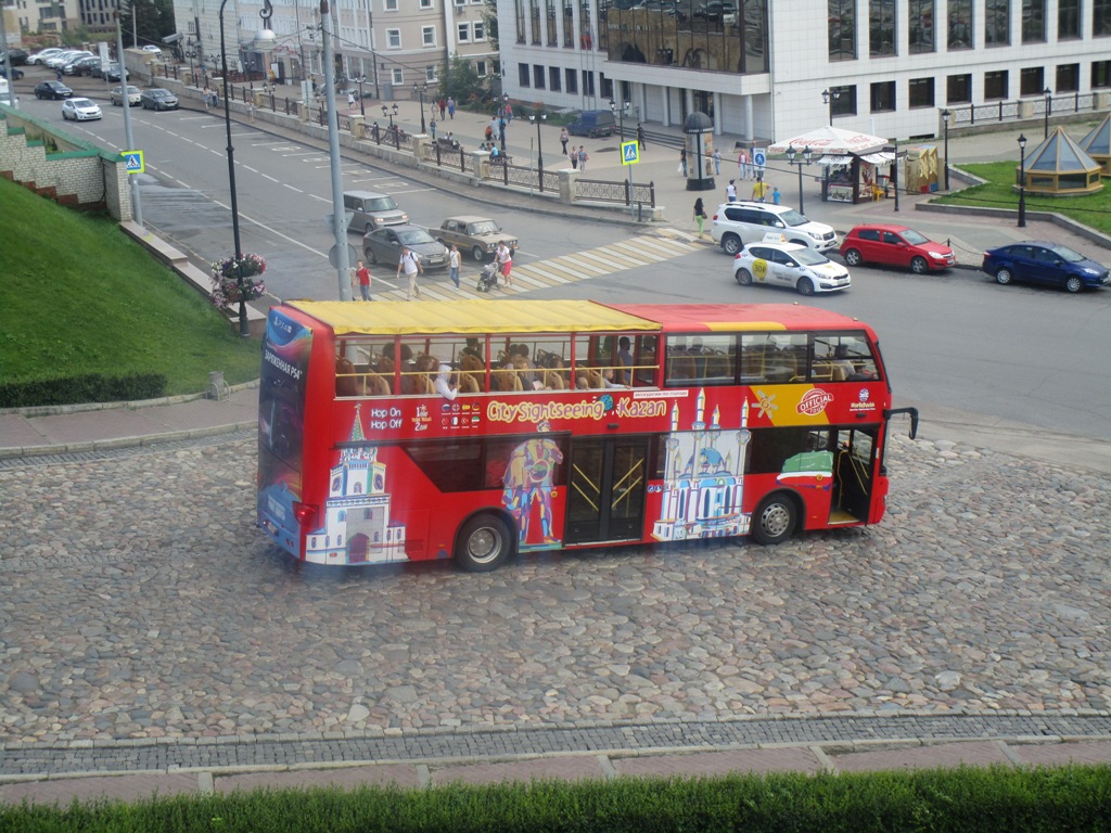День десятый В этот день нами была запланирована обзорная экскурсия на двух этажном, красном автобусе. На автомобиле добрались до площади Тукая, свободно припарковались на стоянке возле памятника и в 10.30 экскурсия началась. Каждому пассажиру выдали наушники, чтобы слушать аудиогида. Рассказывает интересно. Поездка длилась примерно 1 час 15 минут и охватила большинство достопримечательностей. После окончания экскурсии мы проследовали на метро до станции Суконная слобода (1 остановку), прошли мимо красивого театра кукол к Родной Деревне. Деревня очень красивая. Все постройки выполнены из бревна, территория ухожена, много цветов. Зашли в блинную. При нас тут же напекли блинов в русской печке и накормили. После деревни на машине уехали в район Кремля к Дворцу Земледелия, погуляли на красивой набережной и вернулись в квартиру. |