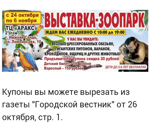 Приехали крокодилы, пауки, тараканы, скорпионы. Они ходят по школам. Стоимость 200 руб. Рассказывают про животных и как говорят можно потрогать. Вот только надо ли это делать |