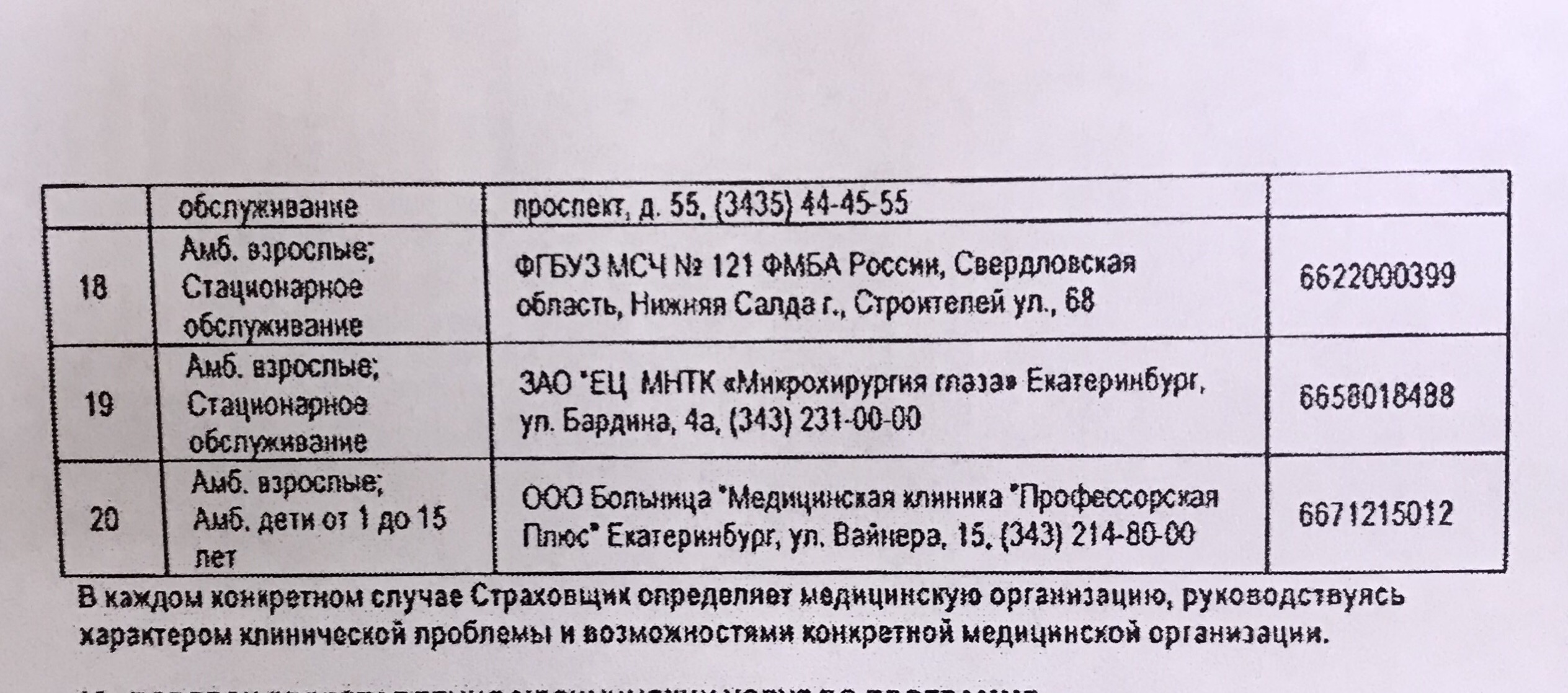 Медицинские учреждения Неплохо было бы ещё список заболеваний, которые не будут оплачиваться страховой, ах да, там вроде есть ещё требование страховой предоставить клиенту список собственных болячек, оплата лечения которых под большим вопросом, ну и предупреждение, что в случае сокрытия этих самых болячек от страховой и обнаружения компанией этого факта, страховая имеет право дёрнуть деньги с клиента за лечение. Не? -------------------- If you like pussy, marriage is not for you