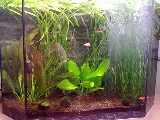 Позвольте пару советов Крипта слева вырастит и задушит все. Пустит листья по верху и будут джунгли без света. Она не под такие размеры аквариума. Или постоянно придется обрывать листья. А если выпустит отвотки... В центре что похожее на лобелию, то же не маленький кустик в перспективе. Не сбалансировано будет. У вас есть хороший задний план, нужен средний и передний. На передний - анубиас нано, по среднему - вариантов много. И немного свободного места, рыпсам подурачиться. Спасибо за совет. Начало было полтора года назат. Названия растений не знал |