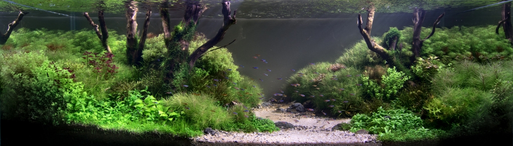 А что, хорошая идея, создать симметрию в аквариуме В класическом понимании "симметрия" в природе не бывает. При оформлении аквариума можно конечно попробовать. Работа с шарами, например, в ссылке, конкурс 2012. Обалдеть как все просто, не один раз возвращался, чтобы еще раз посмотреть. Лучше говорить о балансе. Если слева красное пятно, то необходимо компенсировать справа, при это центр обычно смещают. Практически половина работ выполнена в этом стиле. |