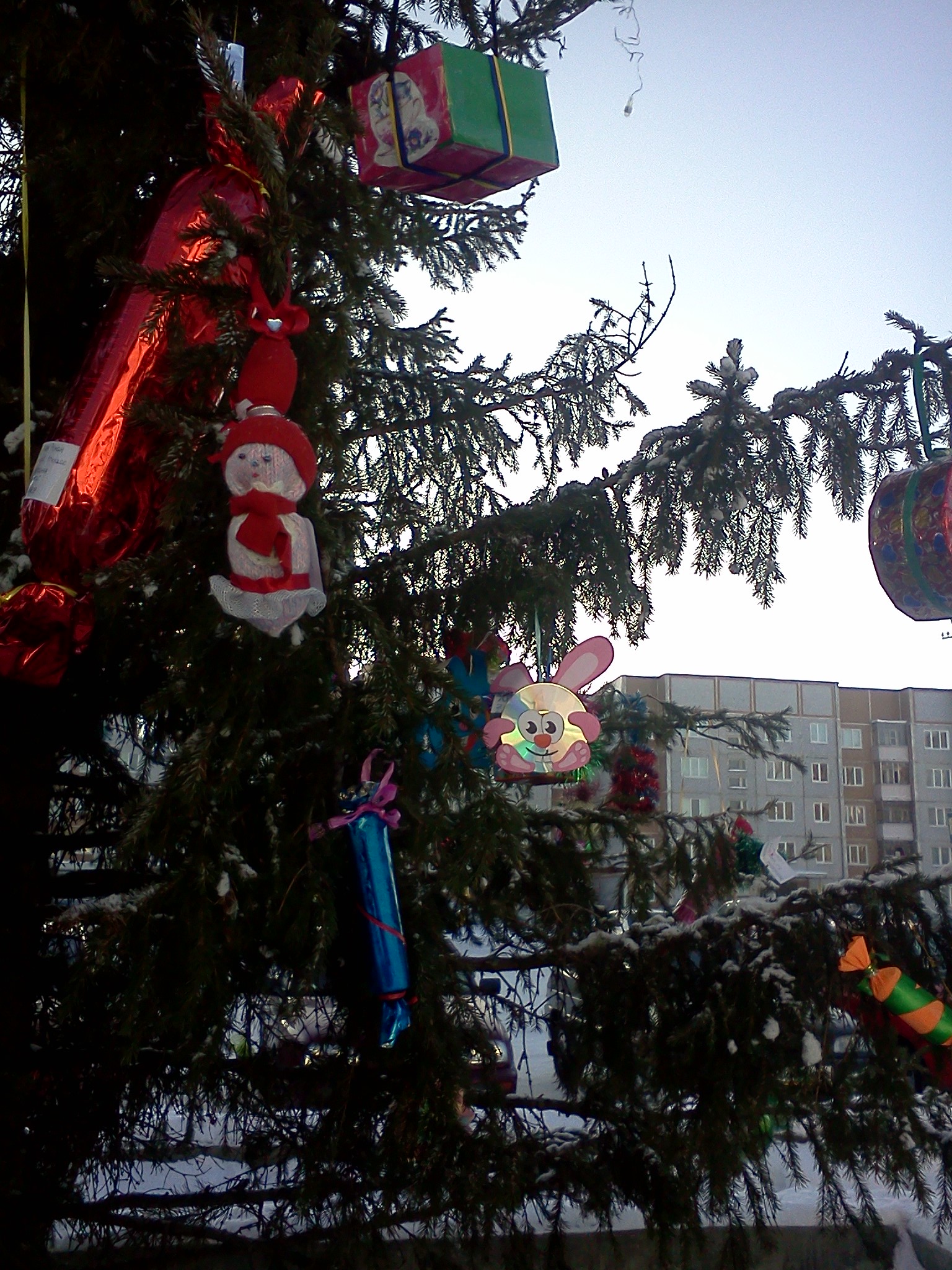 Ёлочка и правда красивая получилась. Игрушки тоже понравились. Только не бывает всё так гладко у нас в Салде. Несколько человек жаловались на поборы, которые устраивали учителя, подготавливая детей к урокам труда, где были сделаны некоторые игрушки на ёлку (эту или на площади возле техникума). То 400 рублей тратили родители на всякие мелочи для изготовления игрушек, другой раз по 500 , только чтобы ребёнок выполнил игрушку на ёлку. Мне помнится, ещё каких-то лет пять назад дети и родители делали такие игрушки с бОльшим удовольствием и без принудиловки. -------------------- Отдавай щедро. Принимай без стеснения.