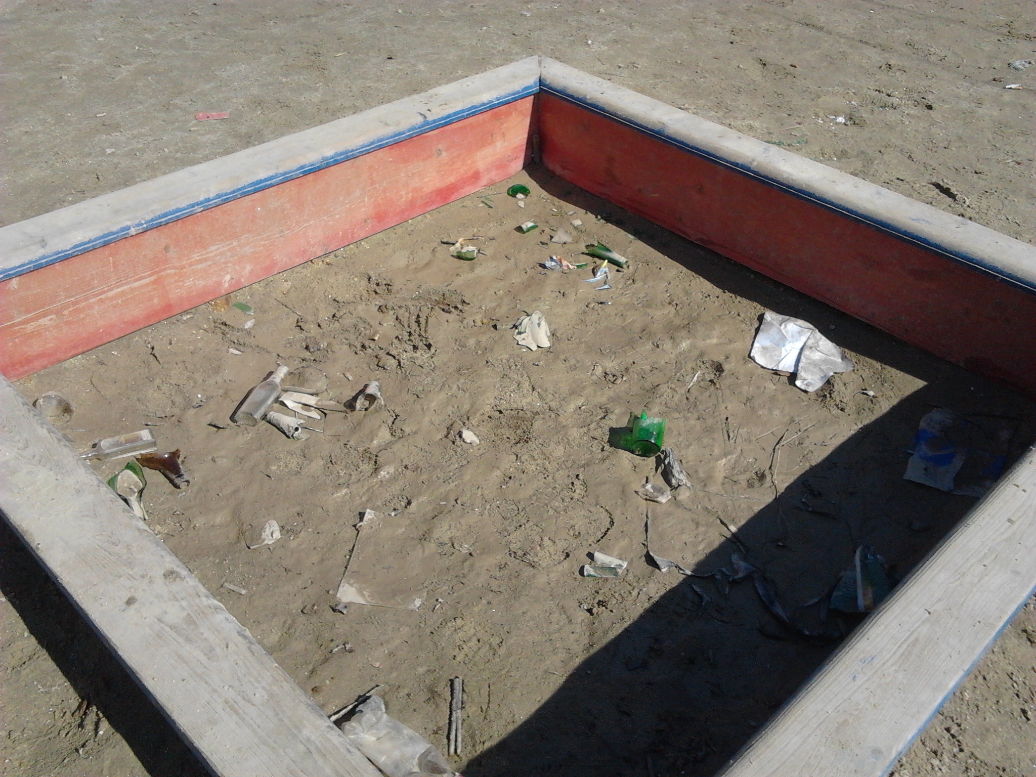 Вот площадка у торгового. Гуляем там ежедневно. В городе во дворах уже как несколько дней все прибрали и нет мусора, а площадка интересно кому принадлежит? Толи хозяину импульса? Салтыкову или Семенцову???? Почему там не прибирают? Понятно, что часть мусора осталась после зимы. Зимой также в мусорках после пт сб дискотек в импусльсе мусорки были битком набиты бутылками.Может стоит обязать импульс по воскресеньям убирать бутылки? Есть и категория родителей которая там не прочь выпить, пока их чадо гуляет) Еще бы не помешало песка в песочницы насыпать, с прошлого года песочницы пустые.