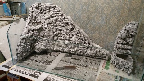 Пока получается так: 1. Изготовлен задний декор из двух кусков, основа пенополистирол , поверх него монтажной пеной имитация камней, потом клеем для плиток на цементной основе выравнивание бугров и частичная подгрузка, чтоб меньше стремился всплыть будучи в воде. в стенку вмонтирован пл. стаканчик под растения, в который будет литься водопад. на втором куске декора из куска упаковки сделан горшок под растения, в него же хочу положить камень для груза. 2. Промывка, вымачивание длительное время, потом просушка. 3. Поверх цементного раствора покраска водно дисперсионной, акриловой краской для наружных работ многослойная покраска, темносерый грунт, потом выпирающие части светлеесерым, и штрихование белой краской с целью придать вид обшарпанности. 4. многодневная сушка, с периодическим вымачиванием. 5. Склеен сам резервуар самостоятельно. 6. обработаны швы, просушен. 7 установлены декоры в банку, без проверки на герметичность, рано еще... . на фото много станет понятно Сообщение отредактировал Кондрат - 2.4.2016, 10:56 -------------------- моя пасека тут https://new.vk.com/public124094018