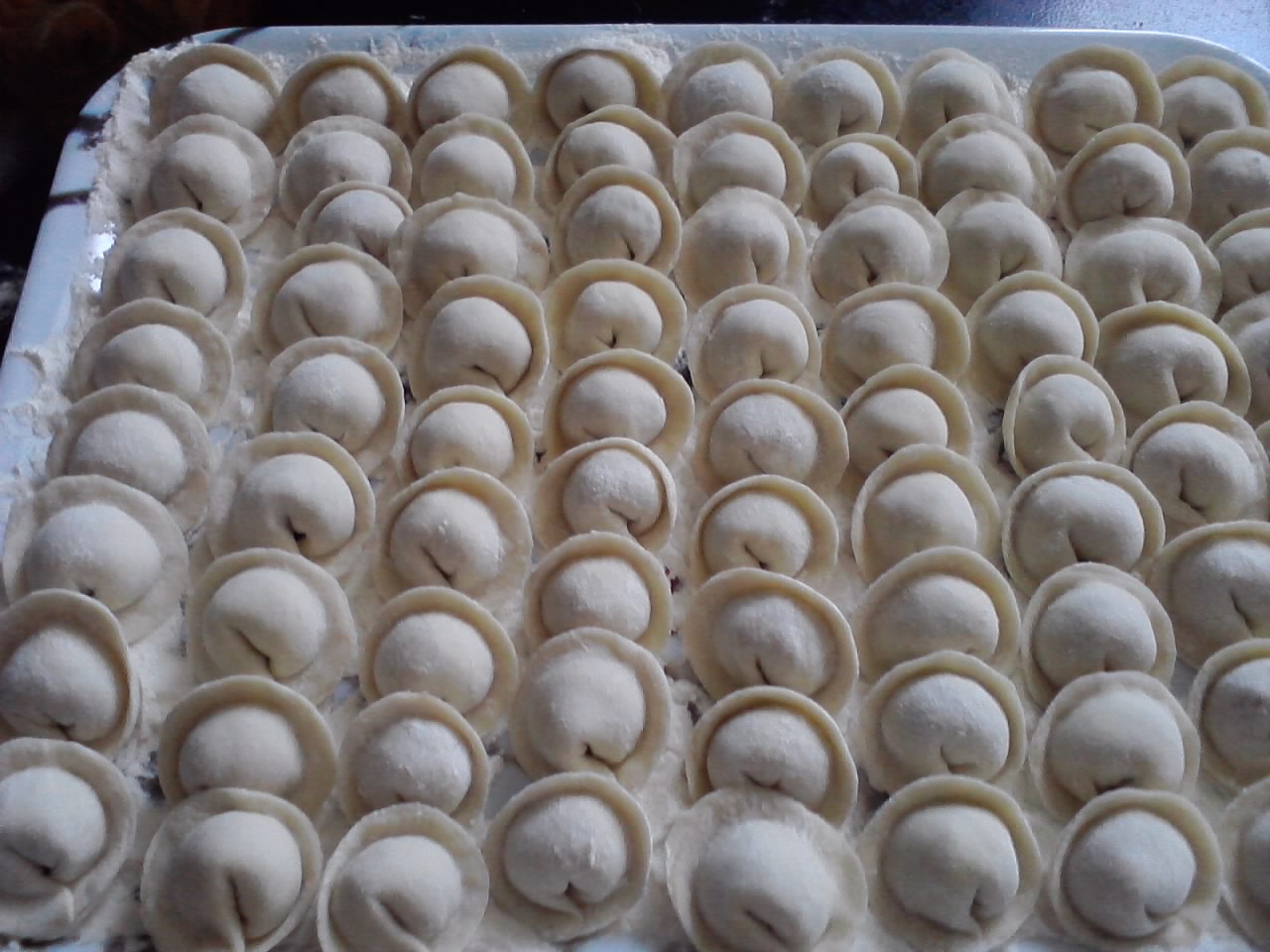 И всё таки опять - пельмени ( а то, вчерашние модераторы скушали ), это уже сегодняшние... Собственно никаких секретов, все умеют их стряпать, главное купить хорошоего мяса, сделать фарш и тесто, ну и тесто раскатывать как можно тоньше. Но самое главное не это , а тот ритуал , который связан со стряпнёй, пожалуй это единственное блюдо, которое делается всей семьёй, которая собирается на кухне. Кто сочни катает, кто лепит, ну и естественно беседуют ...., отличное времяпровождение и возможность пообщаться... -------------------- УСТУПАЙ ДОРОГУ ДУРАКАМ ...