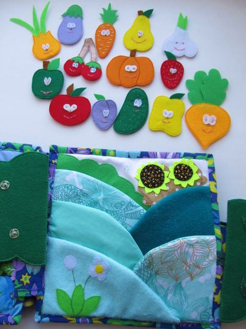 Основной развивающий элемент в грибке - это молния. Как стимулировать малыша ее открыть? СПРЯТАТЬ ПОД НЕЕ СЕКРЕТИК! Или замечательных насекомых, которые греются на шляпке грибочка. Секретики - это наиважнейший момент в каждой развивающей игрушке!! Ведь именно поиск секретика заставляет маленького исследователя открывать все эти наши застежки 😉 Веселый огород! Уххх, какие они все вкусные овощи и фрукты! Их еще и в грядки можно посадить, и посчитать, и цвета поизучать😊 |