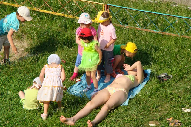 Тем не менее, участок в д/с не место для загорания молодой девушки.... а когда вы с детьми на море выезжаете и там ещё куча купающихся деток и плюсом дядьки в стрингах и тётьки топлез-это норма да? пусть дети радуются жизни,пока они дети.больно они в 3-4 года смотрят на титьки с жопами.им бы песочек да игрушки. -------------------- Ирка,ты у психиатра была?