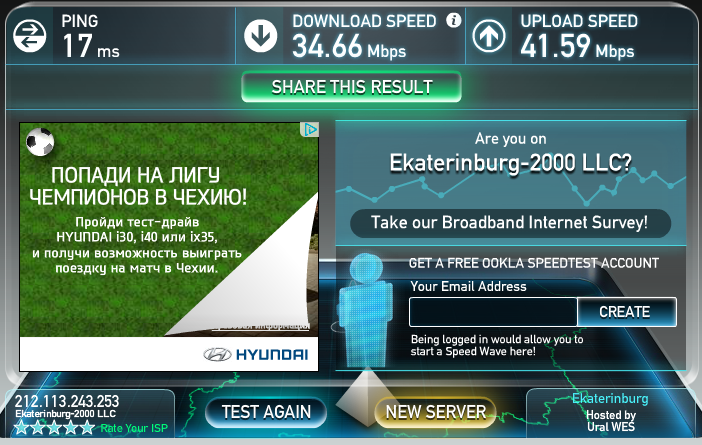 Уже почти неделю нет скорости в принципе. Платишь за 32мб/с - получаешь 1мб/с максимум. Посоветуйте, куда можно свалить с этого чуда? Кто в Салде из провайдеров предоставляет доступ в интернет с нормальной скоростью? |