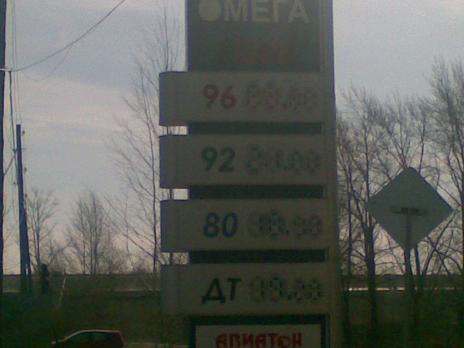 Не смог с утра заправиться на автозаправке на народной (не было бензина) поехал на "ОМЕГА" возле 17 цеха. На стенде висит цена на 92 бензин-- 21.00 (сойдет думаю)пошел оплачивать,подал 1000 кассир быстро как автомат от отсчитала сдачу, чек притом не дала и не отбивала вроде даже. Заправляюсь, смотрю на колонке цена 21.20. Подошел опять к оператору спрашиваю- у вас на стенде цена одна , а на колонке другая. На то она мне- так у нас он не горит и не видно. (стенд). Ну думаю пипец заработалась. Не стал пририкаться, так как спешил и уехал. Заправился не много,но осадок остался |