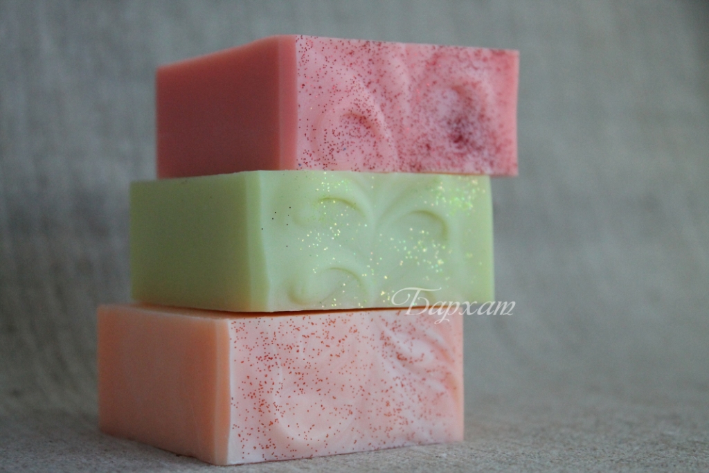 Кофе-шок, кофейно-шоколадное мыло Состав: кофе натуральный на дистиллированной воде; омыленные масла: оливковое, пальмовое, пальмоядровое, какао нерафинированное, миндальное, касторовое; добавки: какое тертое, лактат натрия, цитрат натрия, ароматическая композиция (США). Оближи меня Состав: вода дистиллированная; омыленные масла: оливковое, пальмовое, кокосовое, ши (карите), авокадо, касторовое; добавки: лактат натрия, цитрат натрия, ароматическая композиция (США), пигментный краситель. Новогодние радости Состав: вода дистиллированная; омыленные масла: оливковое, пальмовое, кокосовое, ши (карите), авокадо, касторовое; добавки: сорбит, глицерин, лактат натрия, цитрат натрия, ароматическая композиция (США), пигментный краситель. Маки Состав: вода дистиллированная; омыленные масла: оливковое, пальмовое, кокосовое, ши (карите), авокадо, касторовое; добавки: лактат натрия, цитрат натрия, ароматическая композиция, пигментный краситель. -------------------- Не нужно меня обижать, я девочка ранимая, чуть что - сразу в слезы…