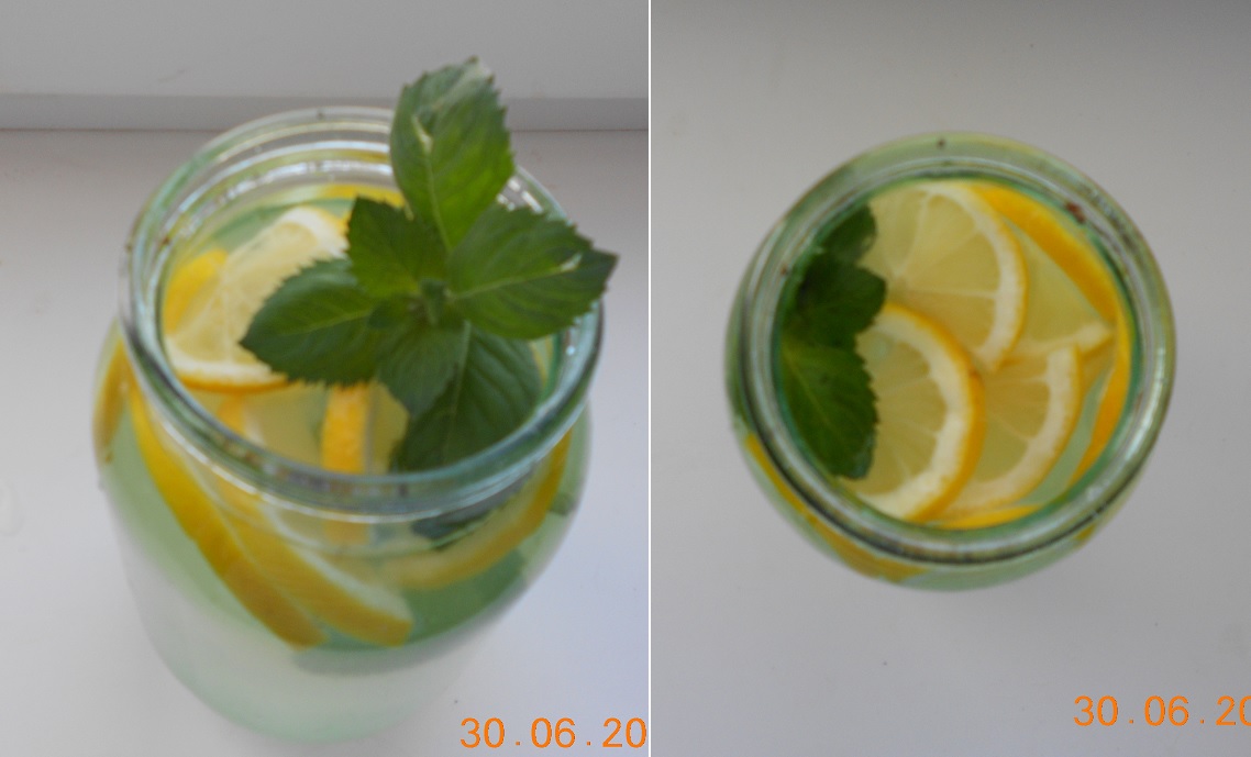 Рецепт натурального лимонада (из расчета на 1 литр): 1/2 крупного лимона 5-6 листиков мяты 2 столовые ложки меда 100 мл кипятка 900 мл холодной кипяченой воды Половину лимона нарезать кружками, кружки разрезать напополам, косточки удалить. Сложить в емкость нарезанный лимон и мед, залить холодной водой. В отдельной емкости залить листья мяты 100 мл кипятка, дать настояться 15 минут. Затем добавить настой мяты в воду с лимоном и медом, хорошо всё перемешать и дать настояться 2 часа. (Мяту кипятком заливаем отдельно, чтобы лимон и мед не потеряли от кипятка свои полезные свойства). |