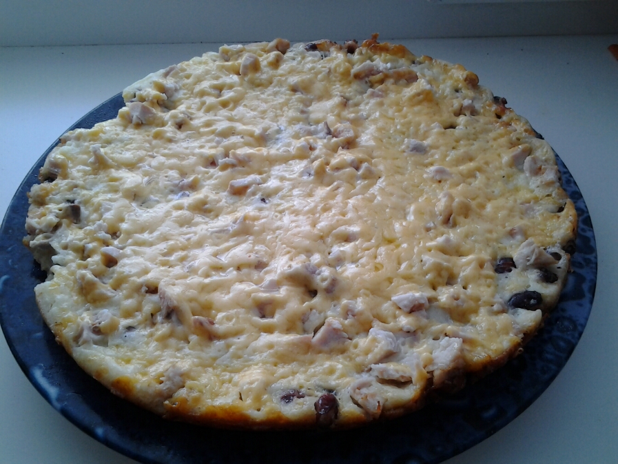 Пицца на скороводе. Быстрый рецепт. Холодную сковороду смазать маслом, вылить тесто. На тесто положить любую начинку для пиццы (у меня фасоль, копченая куриная грудка, чеснок) и засыпать сверху сыром. Закрыть крышкой, поставить на средний огонь, готовить 15-20 минут. Приятного аппетита! Прикольно. Надо попробовать. |
