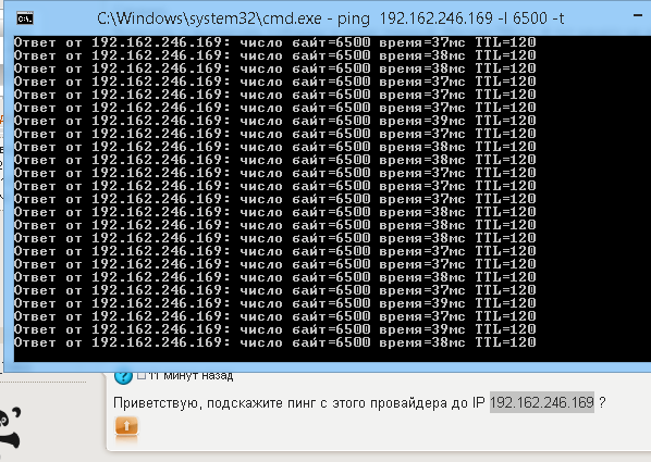 Приветствую, подскажите пинг с этого провайдера до IP 192.162.246.169 ?