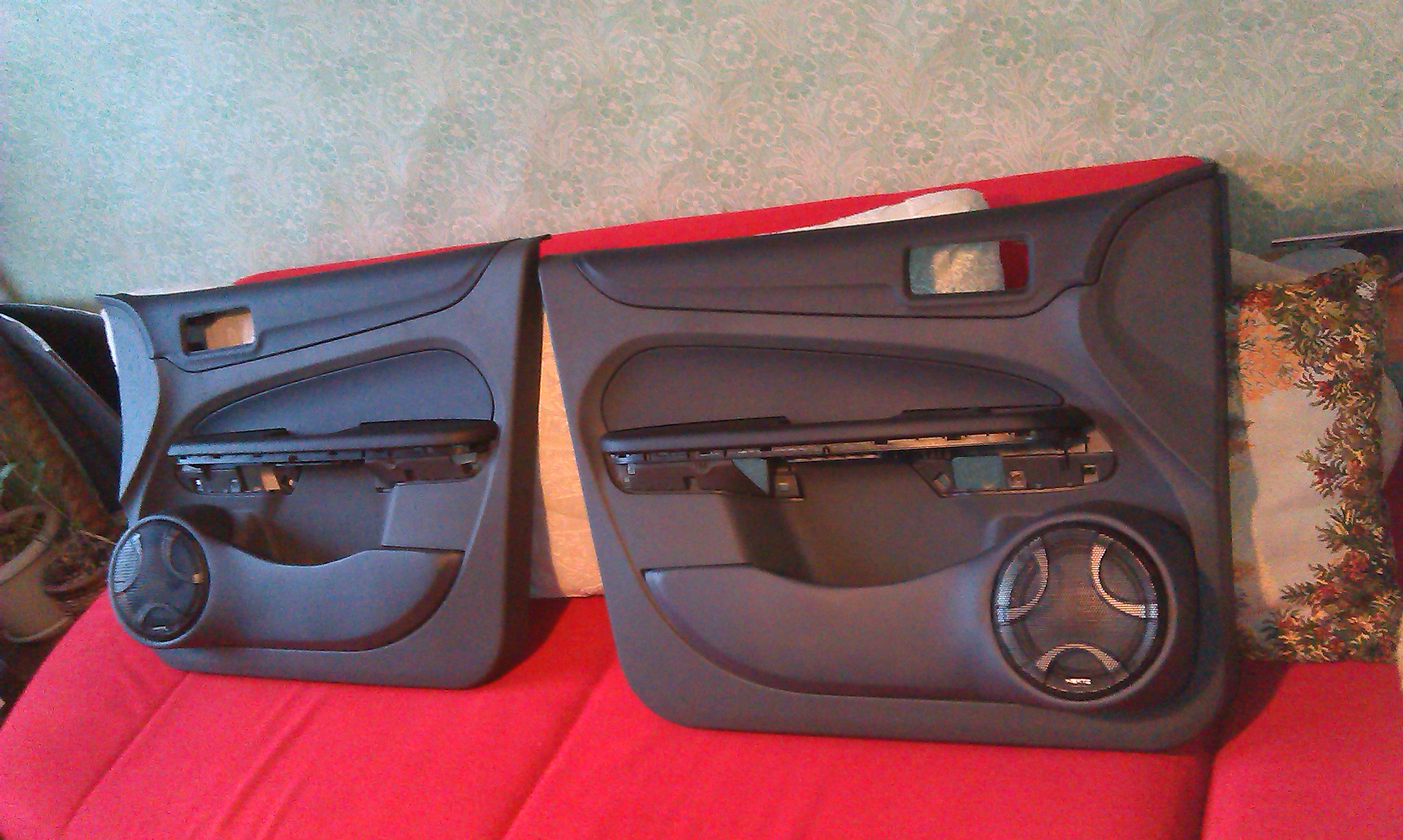 Собственно на Фронте: твиттеры DLS T25 (в уголках зеркал на подиумах), Мидбас Hertz DV 165 (в подиумах), с кроссами от комплекта Hertz DSK 165 (DV 165 + DT 16 + DX 200+ DX100). Hertz DT 16 - выкинут в ящик за свой паршивый звук! Голова JVC - с последующей заменой на процессорную JVC KD-R90BT. На Тыле:Герцы 16" коаксилы - думаю их убрать совсем. ШВИ конечно проведено, только без шумки дверей,ее оставил на весну, фотки с телефона - сорри! Усилитель пока что не планируется . Возможен сабик под сиденье, хотя баса предостаточно! |