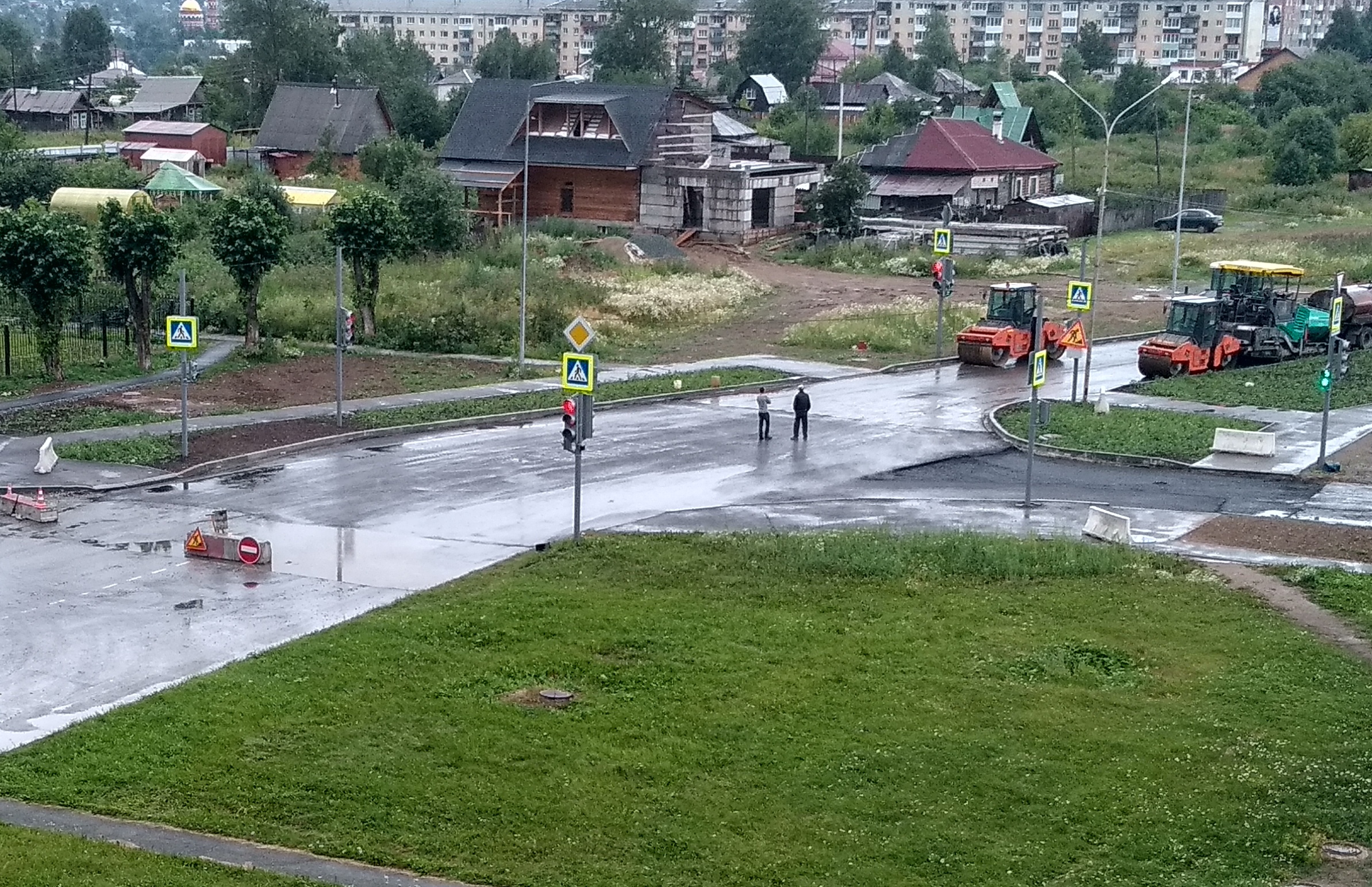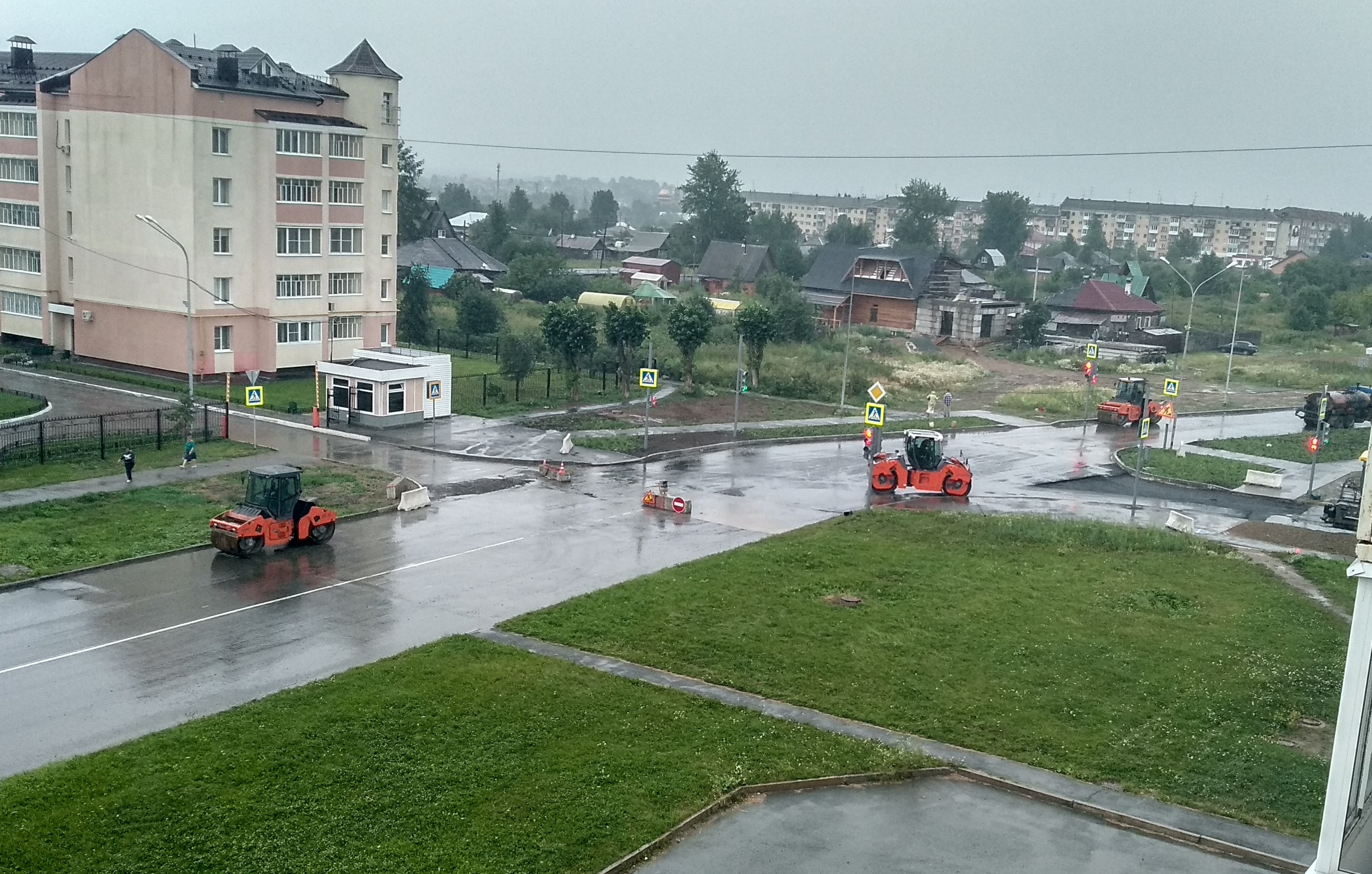 С 5 июля каждый день с балкона наблюдаю за вялотекущим ремонтом (исправлением косяков) новой спрямляющей дороги по Энгельса. И в разговорах даже подшучивали, что мол асфальт не укладывают по причине отсутствия дождей. И вуаля! Ливень - пора укладывать. Ну это просто треш, ребята.