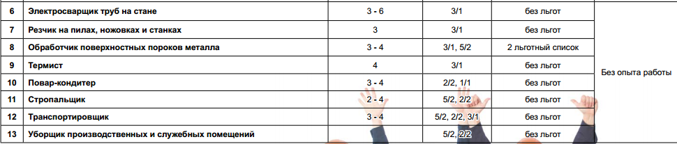 Мне для подруги надо. Я вот разговаривала со знакомым он сказал, что можно без проблем только надо сходить в отдел кадров. Он вот устроился. И говорит, что первые месяца могу, как учиника поставить обучится и там могут отправить обучится на разрят на и по том всё Работать будит Контролер ОТК, сортировщик, охранник, контроллер-кассир, уборщик, оператор ЭВМ в смену в цех. Идите в отдел кадров. |