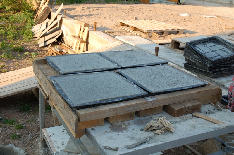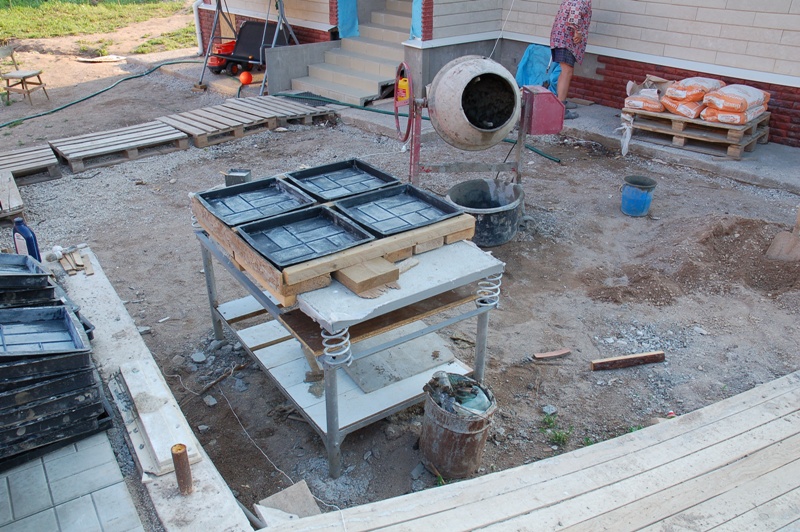 Здравствуйте. 12 июня из-за проливных дождей на стройке ничего не изменилось. Надеюсь, сегодня будет лучше. Хочу выложить информацию с одного из строительных форумов о способе изготовления тротуарной плитки в домашних условиях. Вот текст: