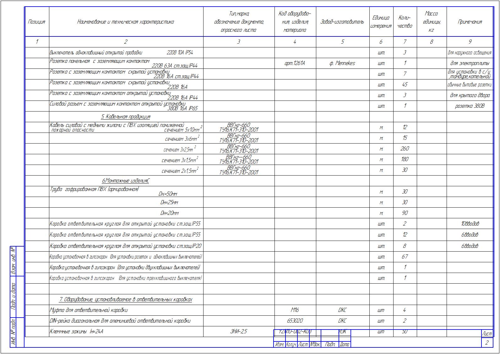 По моей просьбе Специалист выполнил планировку размещения щита, розеток и выключателей с приложением в виде спцификации. Выкладываю спецификацию, а так же счёт на газовый котёл с фитингами и выкопировку из счёта на отопление.
