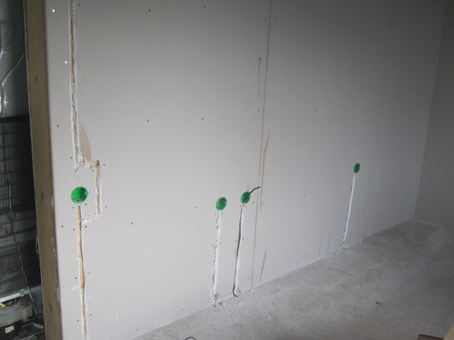 После штробления укладывал проводку в штробы, закрепляя её в штробе с помощью самореза и проволочки. Проводка для освеения 2*1,5 или 3*1,5; к выключателям 3*1,5; розетки 3*2,5. За исключением нагревательной поверхности. К ней розетка не нужна (оказывается), а кабель использовал 3*6. Весь кабель ВВГнг.