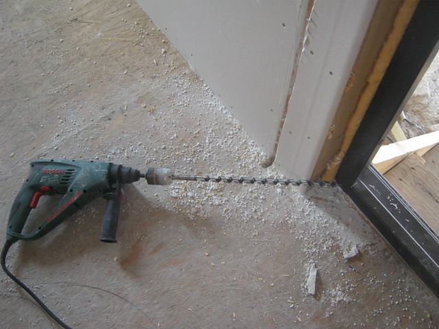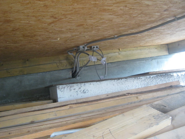 Продолжу по электрике. За прошедшее время монтаж электропроводки выполнен процентов на 85. После монтажа коробок прорезал ножом штробы,как советовал Аресс. Специальный нож не покупал, а использовал обычный строительный нож, меняя только длину выступающего лезвия. Так же для штроб помимо ножа использовал уровни 800 и 2000мм, и отвёртку большую для выковыривания ГКЛ. Самая длинная штроба получилась на проходном выключателе (переключателе) между 1 и 2 этажами - 11 метров. Для бурения отврстий в полу использовал перфоратор 3 в 1 и бур по дереву. Толщина пола - СИП панель 224мм.