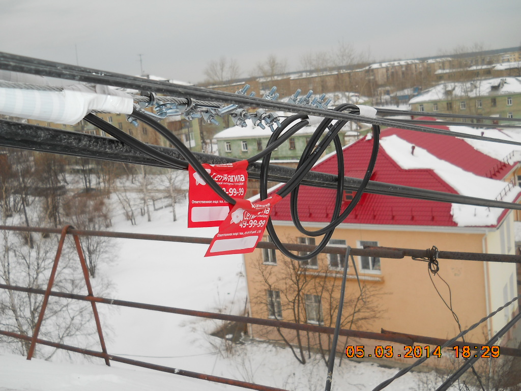 А что не выложили фотки с монтажа К-М 81??? По дому тянули транзитный неразрывной кабель, монтаж проводили вероятнее всего с руководителем отдела, фотоотчёт в таких случаях не делают, хотя.... Мы не тянем китайкой ( за исключением крайних узлов в ЧС ) , тем более такой монтаж не делаем. Вот фото с соседнего дома. Изоленту используем, проматываем раз 20-30, чтобы кабель не тёрся об другие кабеля или иные преграды. На доме кабель растягивается крепежами(см.фото). Ещё будут трольские вопросы? Предлагаю обсудить кабель питания ВВГ или ящики, их ещё не обсуждали. )))) Сообщение отредактировал merk - 13.3.2015, 17:47 -------------------- С уважением, Андрей Меркулов