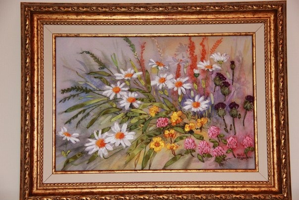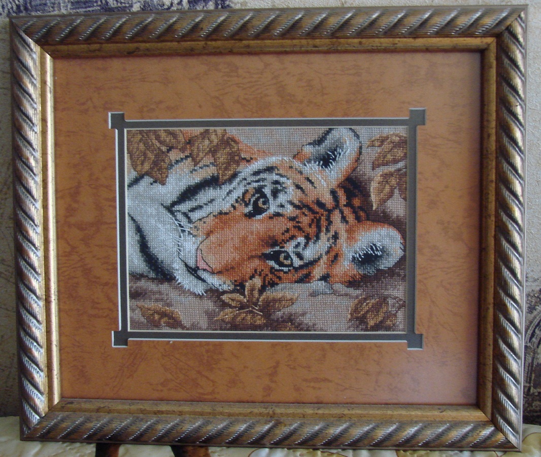 ну вот, пара багетов. Фото поближе и оформление в целом. Всё было сделано на усмотрение Людмилы Валерьевны. Согласитесь, что подобрано очень удачно. Такой роскошный багет скорее подойдет для картин, написанных маслом. Шитье несколько теряется в таком обрамлении и смотрится безлико. -------------------- Просто человек искусства