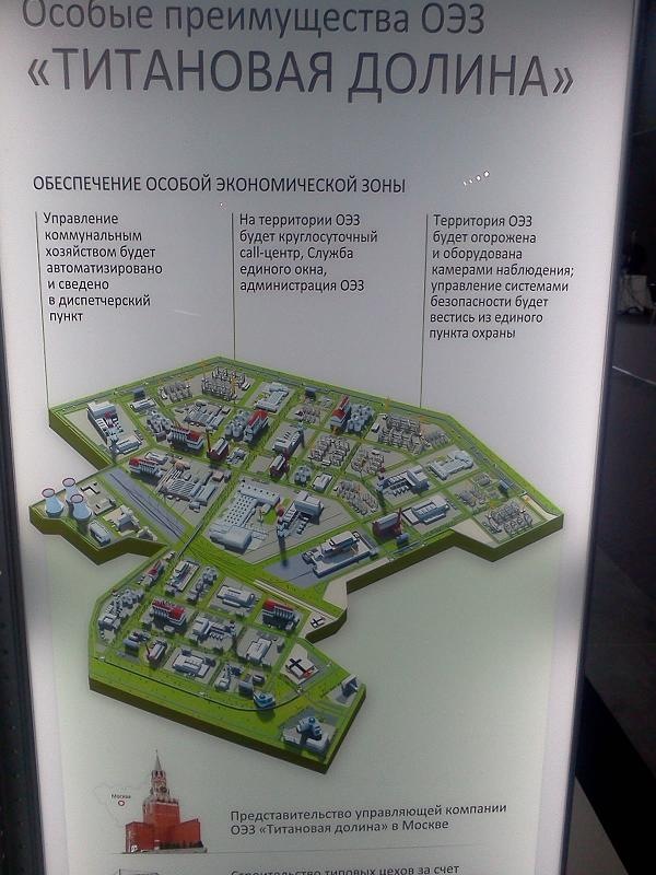 В прошлом 2011 году на иннопроме был зеленый огромный плакат с элементами макета по титановой долине. В этом году гораздо скромнее Так таки контора "Рога и копыта" уже долги начинает накапливать на пустом месте (то есть в титановой долине) Даже на презентацию проекта денег не хватает, скромно то каааааак..... А как же аэропорт Нью-Васюки? |