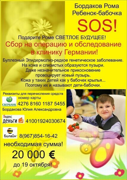 Дорогие мамочки! Думаю все вы знаете, что в нашем городе живёт хороший мальчик Рома Бордаков, который неизлечимо болен… Ребёнок-бабочка наш Рома… В октябре его семье необходимо срочно везти Рому в Германию на лечение. Денег катастрофически не хватает. Прошу поучаствовать всех неравнодушных в небольшой ярмарке… я нашила игрушечек из фетра и все, кому они приглянулись, могут их приобрести… Так же есть несколько мягких игрушек… цены я ставить не буду.. всё на ваше усмотрение… Все вырученные средства с ярмарки будут переданы маме Ромы Юле. И будьте здоровы! П.с. Думаю, я не одна такая рукодельница… присоединяйтесь… предлагайте свои творения. Вырученные с продажи деньги переводите на номер карты мамы Юли, она указана в теме на сайте http://vsalde.ru/letters/7868-rome-bordako...-saldincev.html тел.89221003865 Сообщение отредактировал Злюка - 18.9.2014, 22:56 -------------------- Шью из фетра деткам... пеку домашние торты