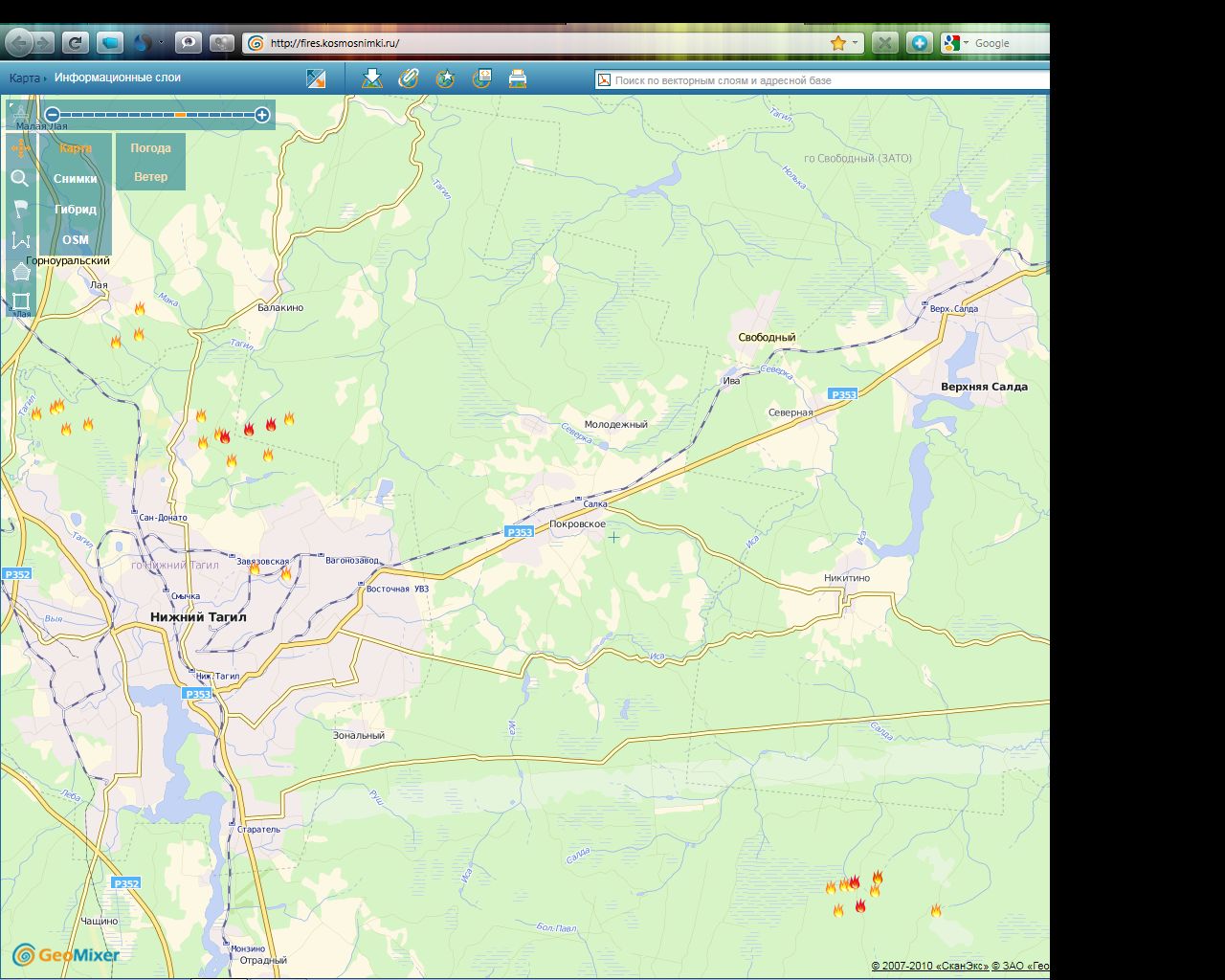 Судя по азимуту больше похоже на район д. Балакино, которая на реке Тагил. Хотя пожар похоже уже на большой территории. Вчера вечером был виден узкий чёрный шлейф дыма на большой высоте с той стороны.