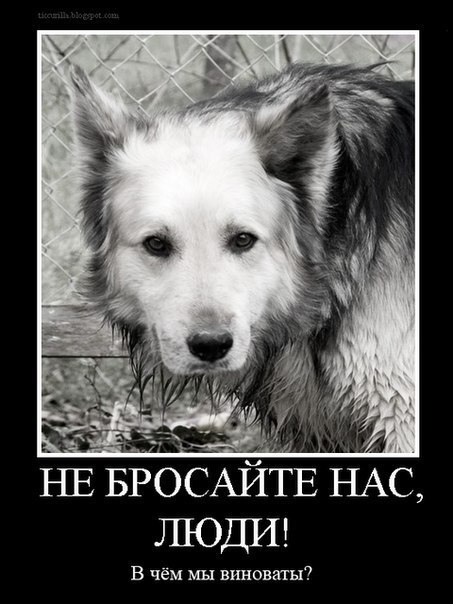 и кстати в первых числах января по площади быкова действительно, бегала собака бойцовской породы, с ошейником... нашел бы тех людей, которые её либо выгнали, либо упустили по причине празднования НГ, либо ещё как то.. первых бы прибил... Собаку не выгнали и не упустили ,а скорее всего отпустили погулять. Как кошку. Традиция такая в Салде - отпускать "погулять" собак. Лично знаю людей,которые так делают ,ибо считают,что их собака "никого не тронет" и у них " нет времени " её выгуливать. Считаю,что именно с такими горе -хозяевами надо бороться (штрафовать). Ибо слов они не понимают. -------------------- ...А мир устроен так, что все возможно в нем, Но после ничего исправить нельзя. |