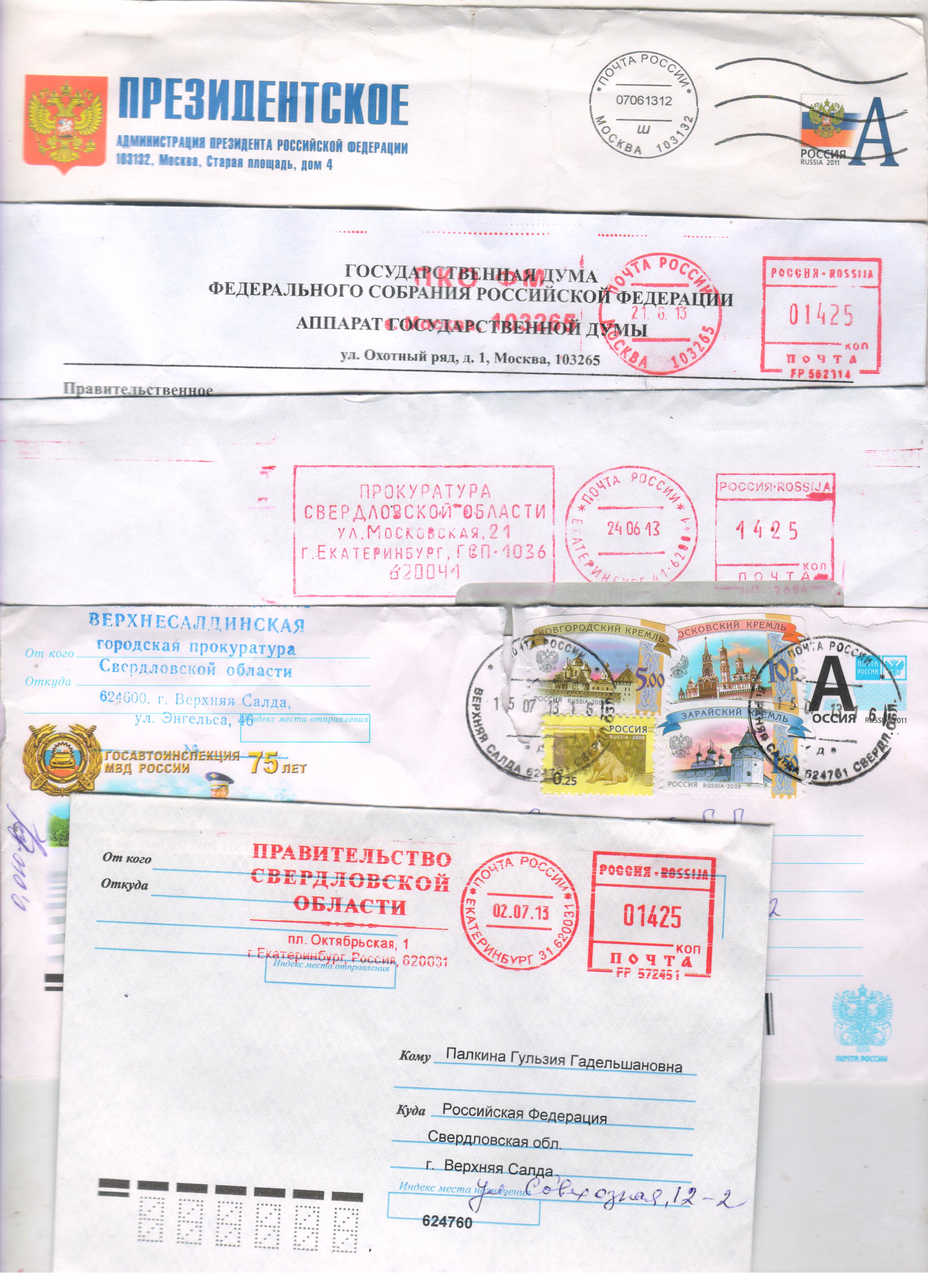 Добрый вечер! Письмо от администрации ВСГО 16.05.2013 г. № 12/01-20/237 Письмо от администрации ВСГО от 04.06.2012 г. № 08/01-20/351 Ответ из Верхнесалдинская городская прокуратура 15.07.2013 № 455ж-13 Письмо от администрации Горнозаводского округа от 27.07.2013 г № 33-01-82/236 Письмо из Правительства Свердловской области от 02.07.2013 г Письмо от Государственной Думы РФ от 21.06.2013 г Прокуратура Свердловской области от 19.06.2013 № 7-1790-13 Письмо от Администрации Президента РФ от 05.06.2013 г. № А26-01-52339171 Жду извинений... Ждите. Знаете, сколько я могу вам тут конвертов выложить - вам и не снилось! -------------------- зиган