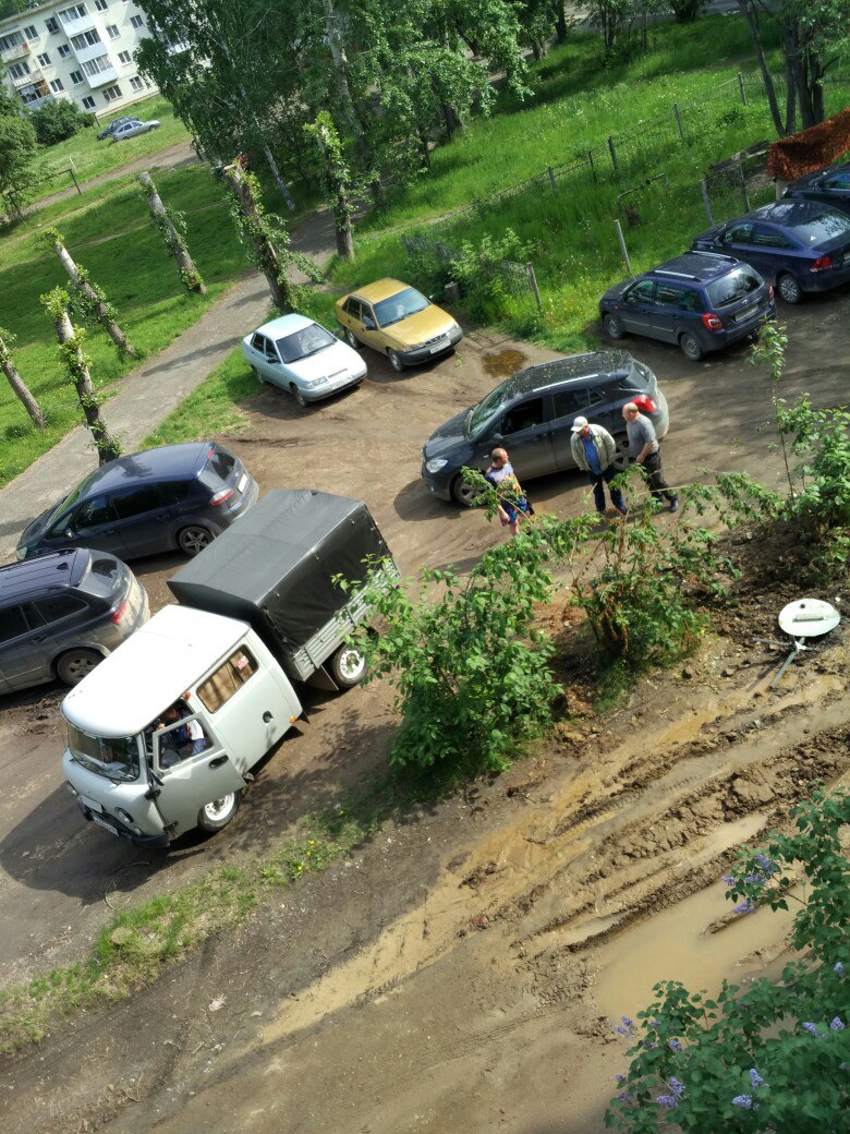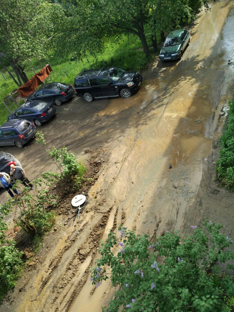 Итак по Пролетарской все уехали. Из подъезда выходим прямо в лужи.