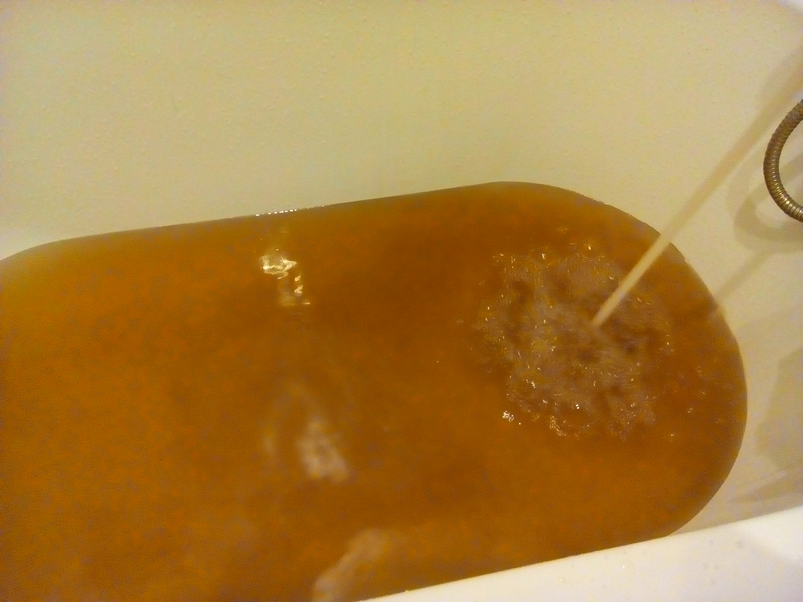 Где-то трубы заменили, потому ржавчина и идёт. Со временем вымоется.