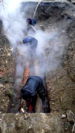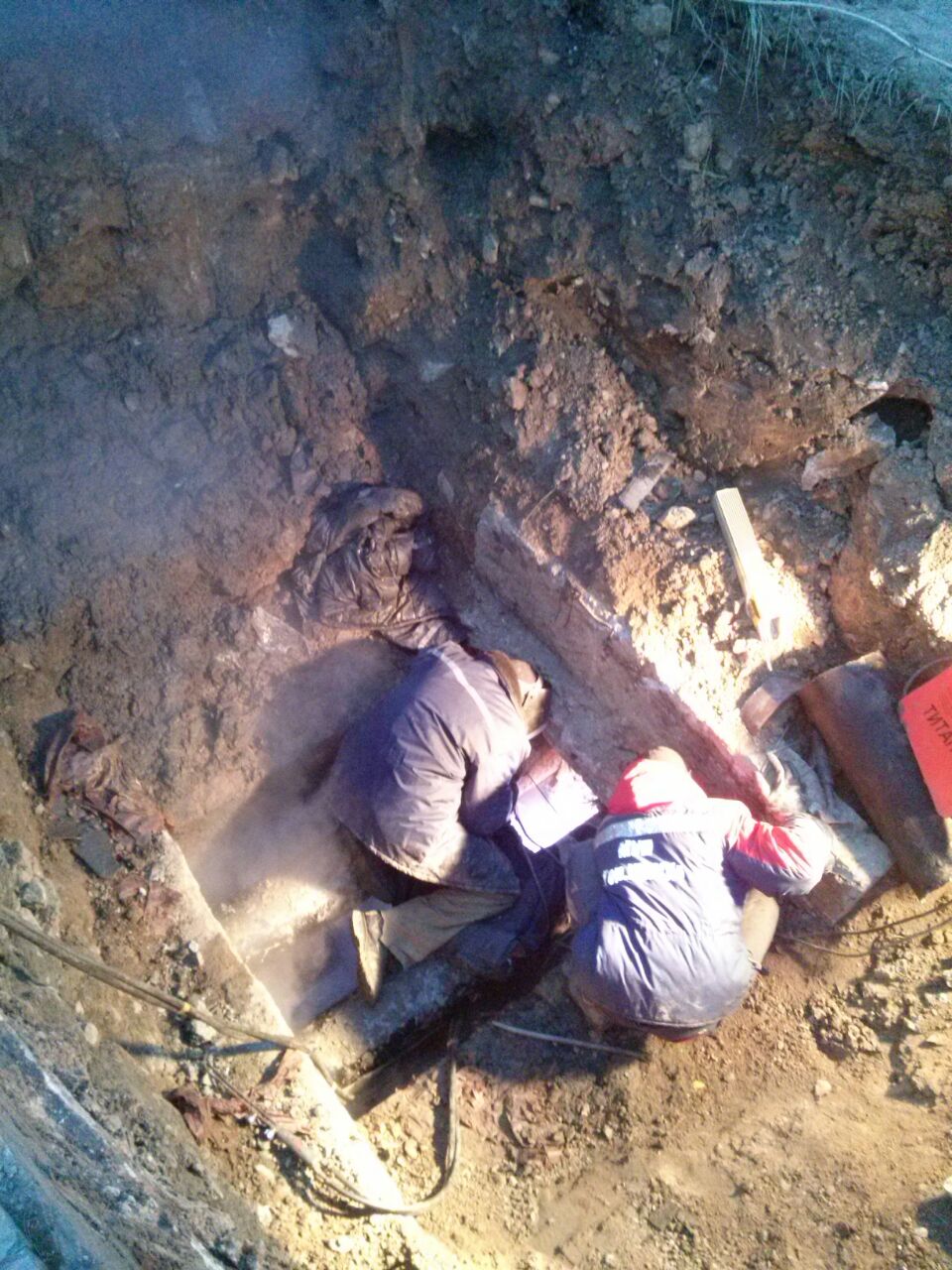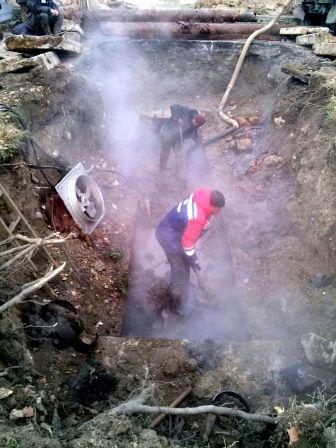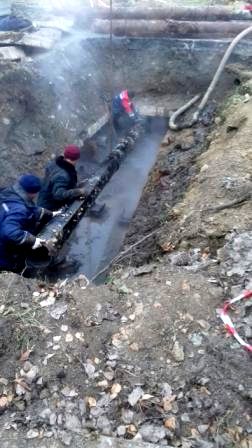 Аварию устраняем, работаем сегодня до полного устранения. Ирина Александровна, у Вас такие ценные кадры работают, которые в свои выходные при любой погоде в грязном болоте работают не покладая рук, чтоб жители города жили в тепле и комфорте, надеюсь у них достойная зарплата и Вы их не обижаете, не каждый будет заниматься таким грязным делом. |
