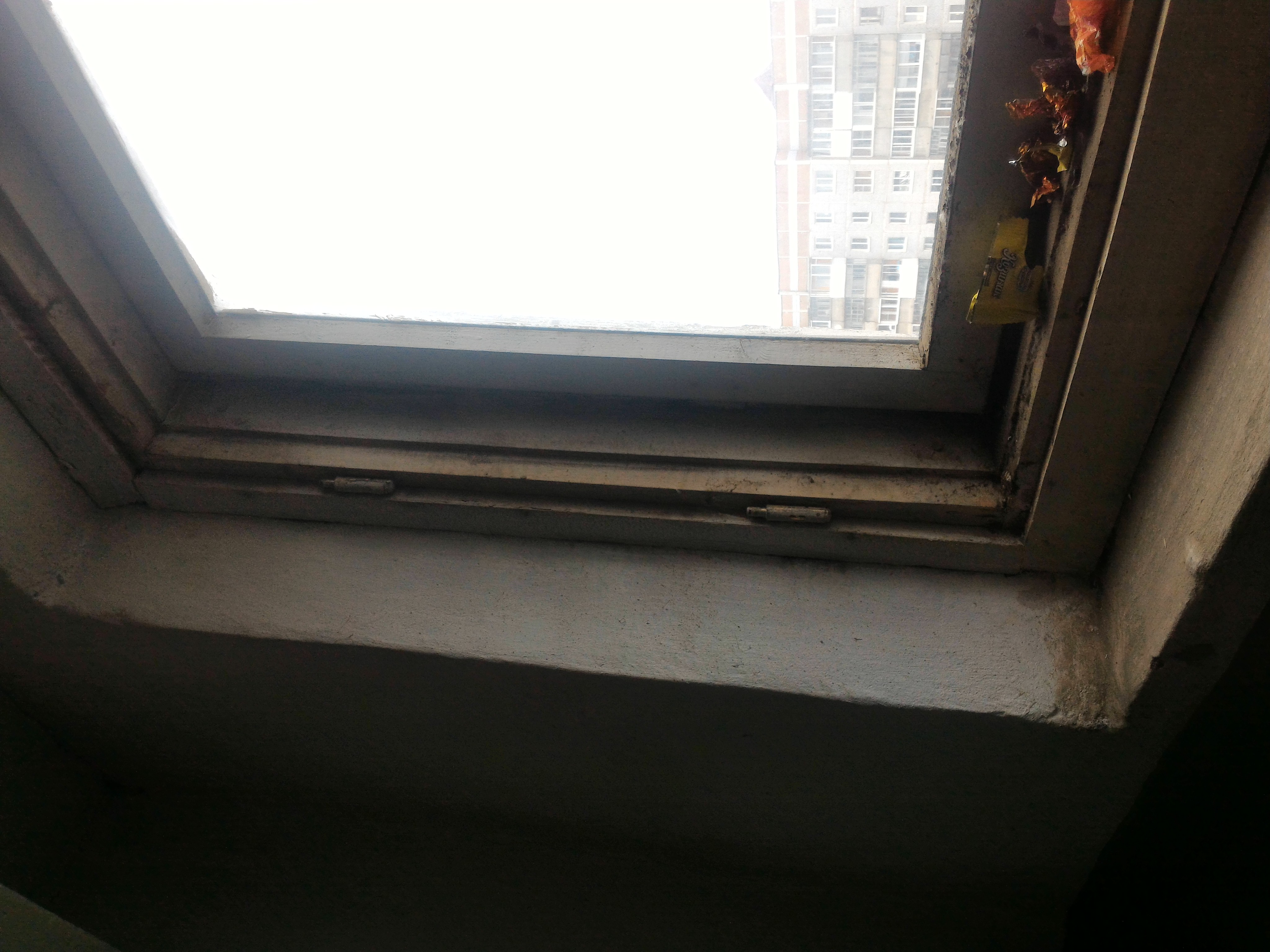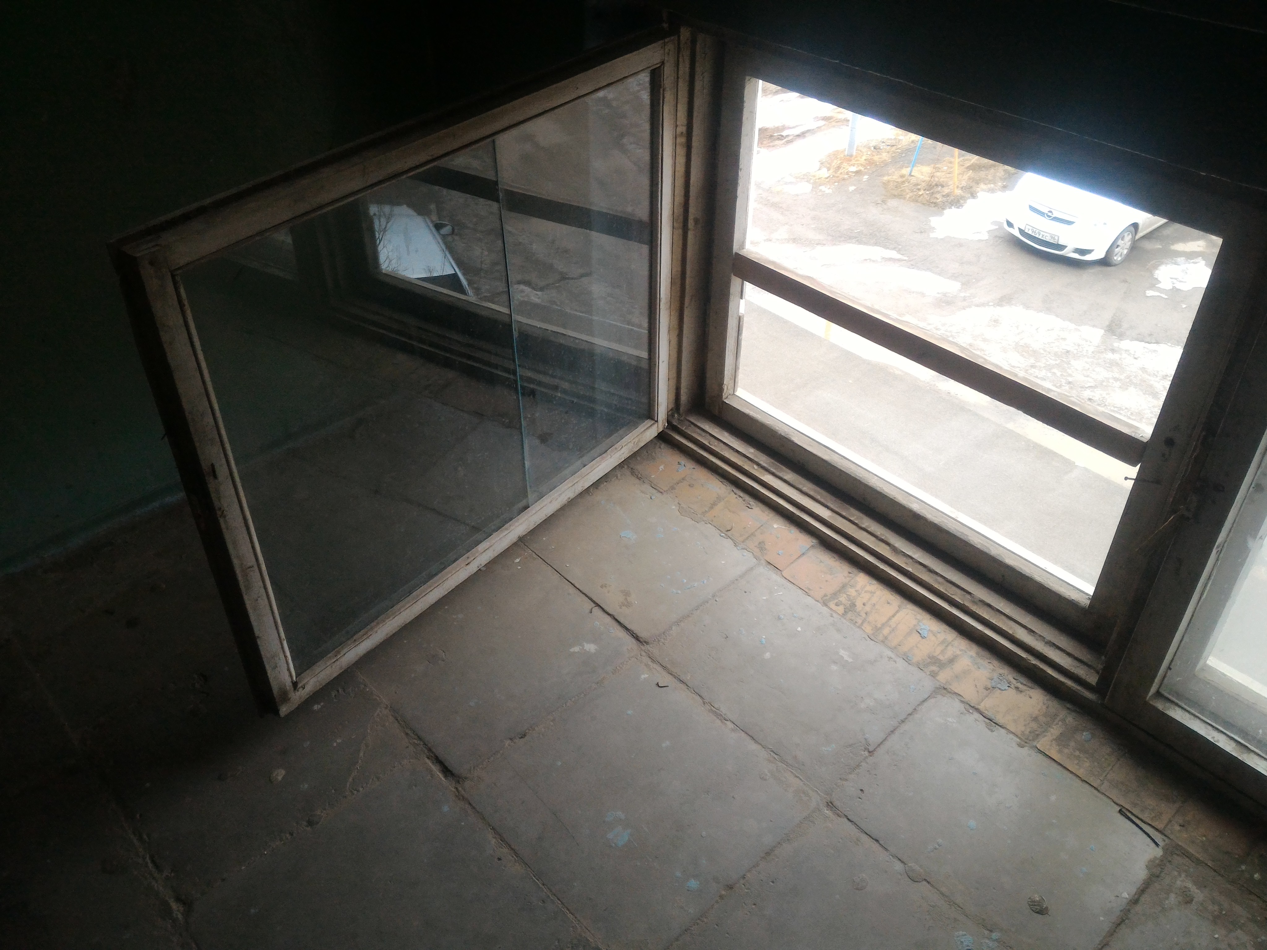 Вот их работа сегодняшняя: "отремонтировали" по заявке Просто вынули стекло из наружной рамы, внутреннюю распахнули и ушли домой. Это не просто преступление, это серьёзнее: это халатность и распущенность. А если маленький ребёнок побежит по леснице и споткнётся на ступеньке? Это третий этаж. |
