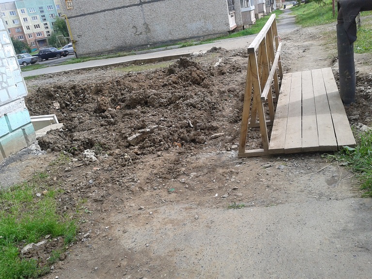 За домом по Кирова 3, метров 5 тротуара в грязь превратили весной, В АПРЕЛЕ (когда вода 2 недели лилась по Пролетарской и для неё слив прокопали за домом по Кирова 3) до сих пор даже щебнем не присыпано...
